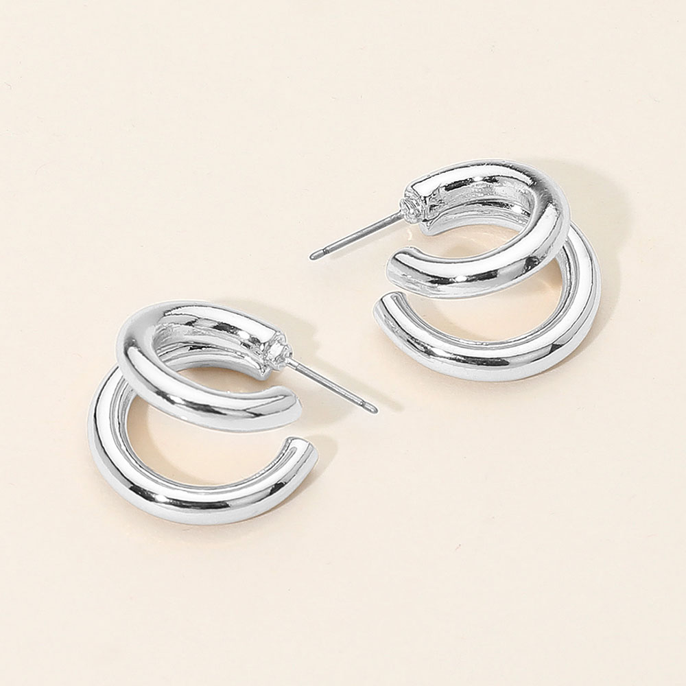 • Stylish double hoop earrings featuring a sleek design for a modern and versatile look. Ideal for everyday wear or elevating casual outfits, these earrings add a touch of effortless sophistication to any style.