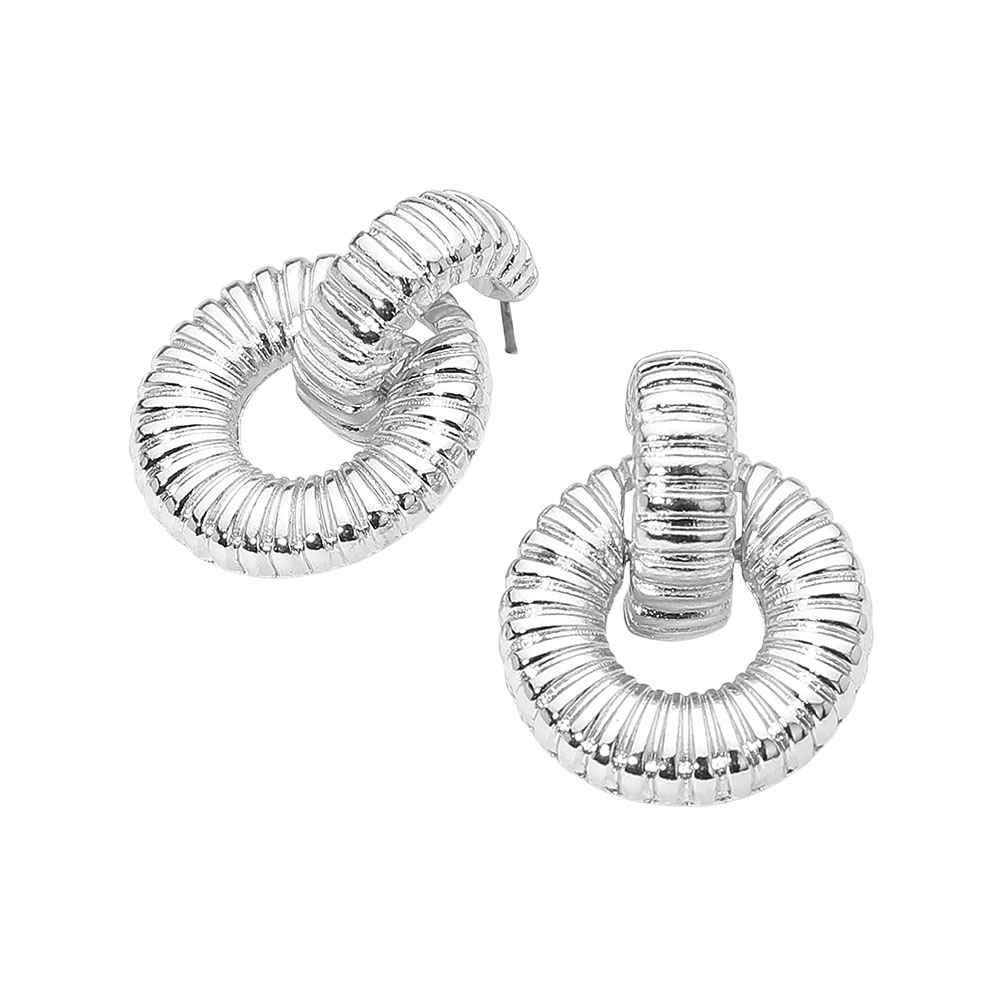 • Elevate your accessory game with these textured circle earrings. Their sculpted design and interlocking loops create a bold yet elegant statement, perfect for adding modern sophistication to both casual and dressy looks.