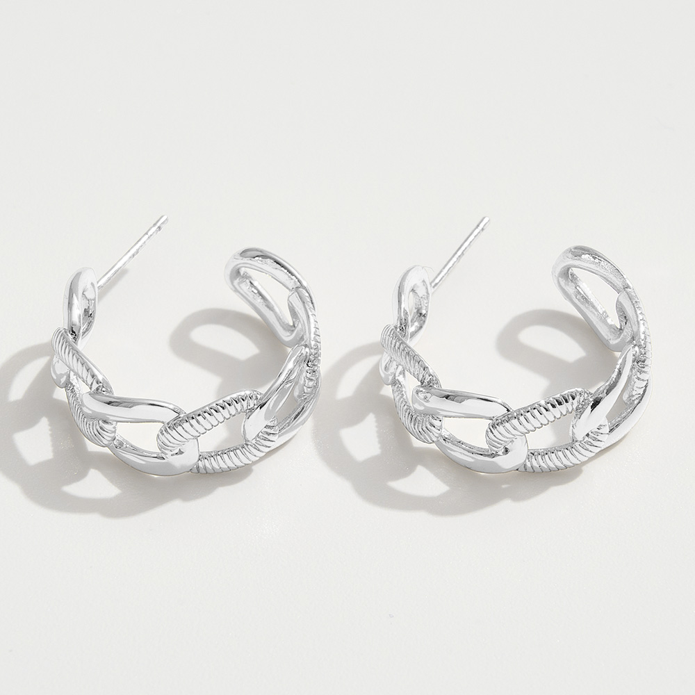 Details • Size : 1" X 0.8" X 0.4" • Post Back • Statement hoop earrings featuring an open link chain-inspired design with subtle texture accents. These hoops bring a modern edge to classic styling, making them the perfect accessory to elevate both everyday outfits and evening looks with effortless sophistication. • Brass • Gold Dipped • Hypoallergenic • Lead and Nickel Compliant • Made In Korea