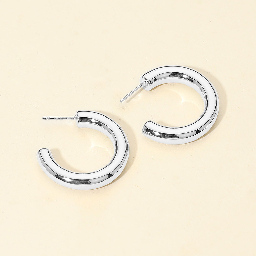 Details • Size : 1.2" X 1.2" • Post Back • Refined and versatile, these small open hoop earrings add a touch of modern polish to any outfit. Their sleek design offers timeless appeal, making them a perfect everyday essential that transitions seamlessly from work to evening wear. • Brass • Gold Dipped • Hypoallergenic • Lead and Nickel Compliant • Made In Korea