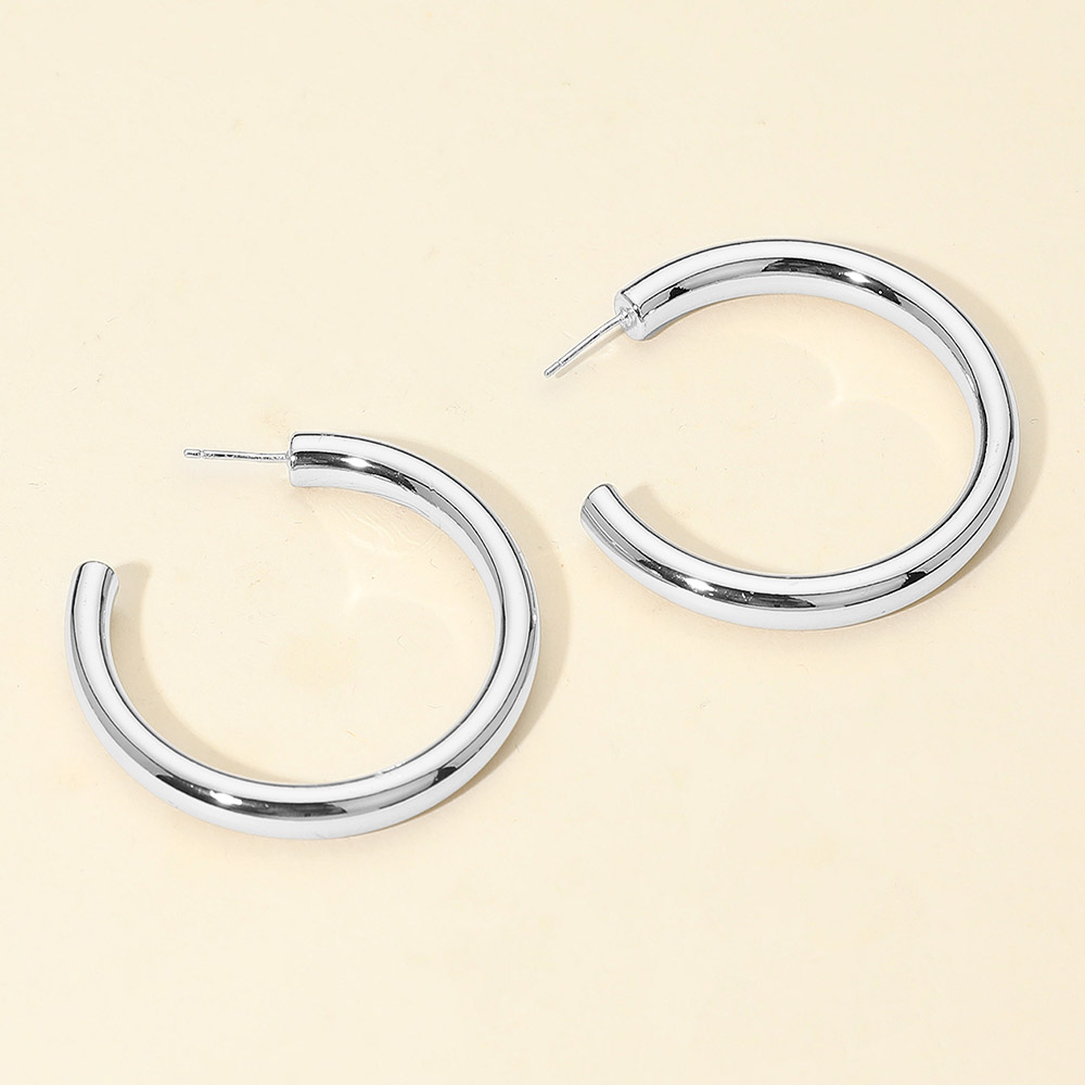 Details • Size : 2" X 2" • Post Back • Make a statement with these sculpted open hoop earrings, designed in a bold chunky silhouette. Their contemporary open-ended style adds effortless edge, perfect for elevating casual looks or complementing evening wear with modern sophistication. • Brass • Gold Dipped • Hypoallergenic • Lead and Nickel Compliant • Made In Korea