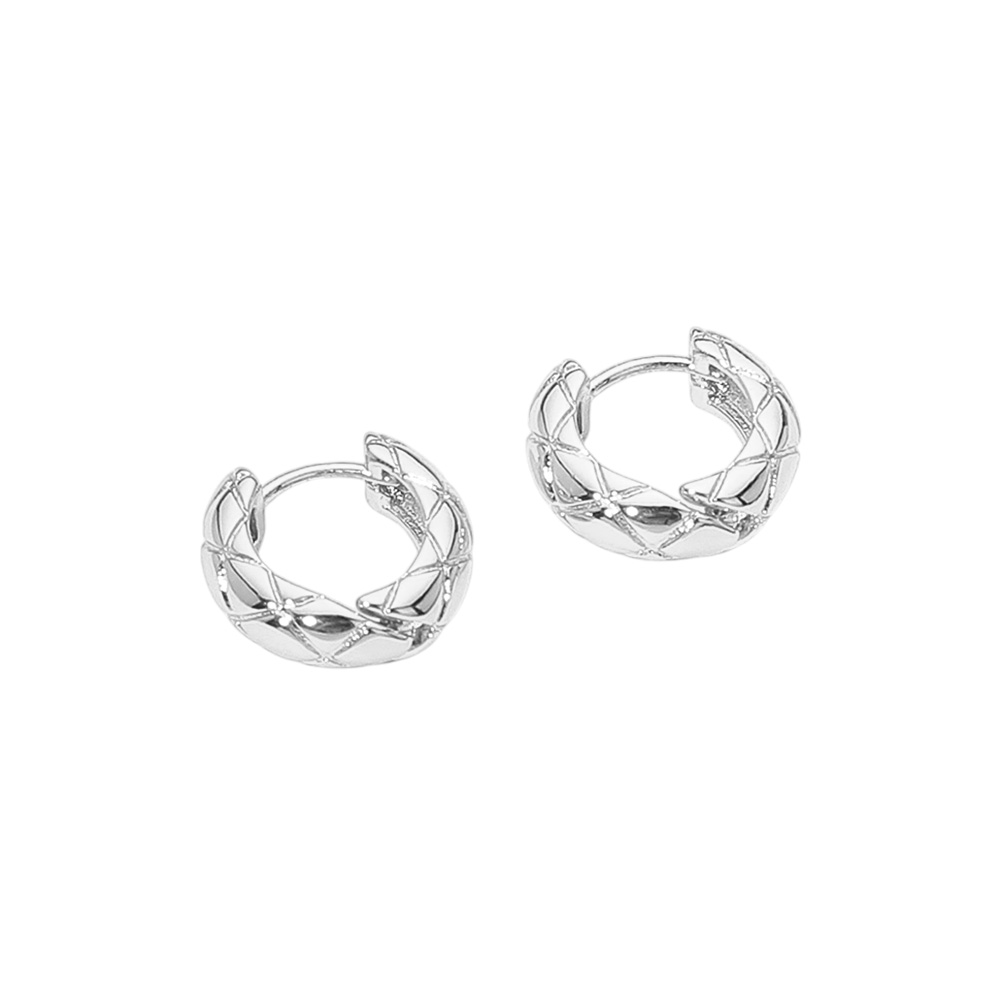 Details • Size : 0.6" X 0.6" X 0.25" • Huggie Back • Chic quilt pattern hoop earrings featuring a textured design that adds elegance and detail to a classic style. Perfect for both casual and dressy looks, these versatile hoops bring a modern twist to timeless accessories, making them a stylish addition to any jewelry collection. • Brass • Gold Dipped • Hypoallergenic • Lead and Nickel Compliant • Made In Korea