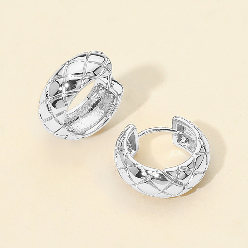 • Stylish quilt pattern huggie hoop earrings with a bold, textured design that elevates any look. Their compact size makes them ideal for everyday wear while still offering a touch of elegance, blending modern charm with timeless appeal for versatile accessorizing.