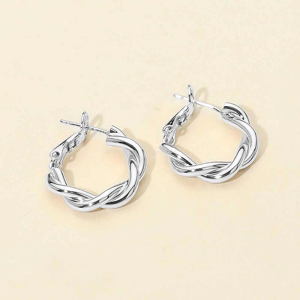 Details • Size : 0.8" X 0.8" • Omega Back • Chic small hoop earrings featuring a braided twisted design that adds a touch of sophistication to any outfit. Lightweight and comfortable for all-day wear, these versatile hoops are perfect for layering with other jewelry or wearing alone for a simple yet elegant accessory style. • Brass • Gold Dipped • Hypoallergenic • Lead and Nickel Compliant • Made In Korea