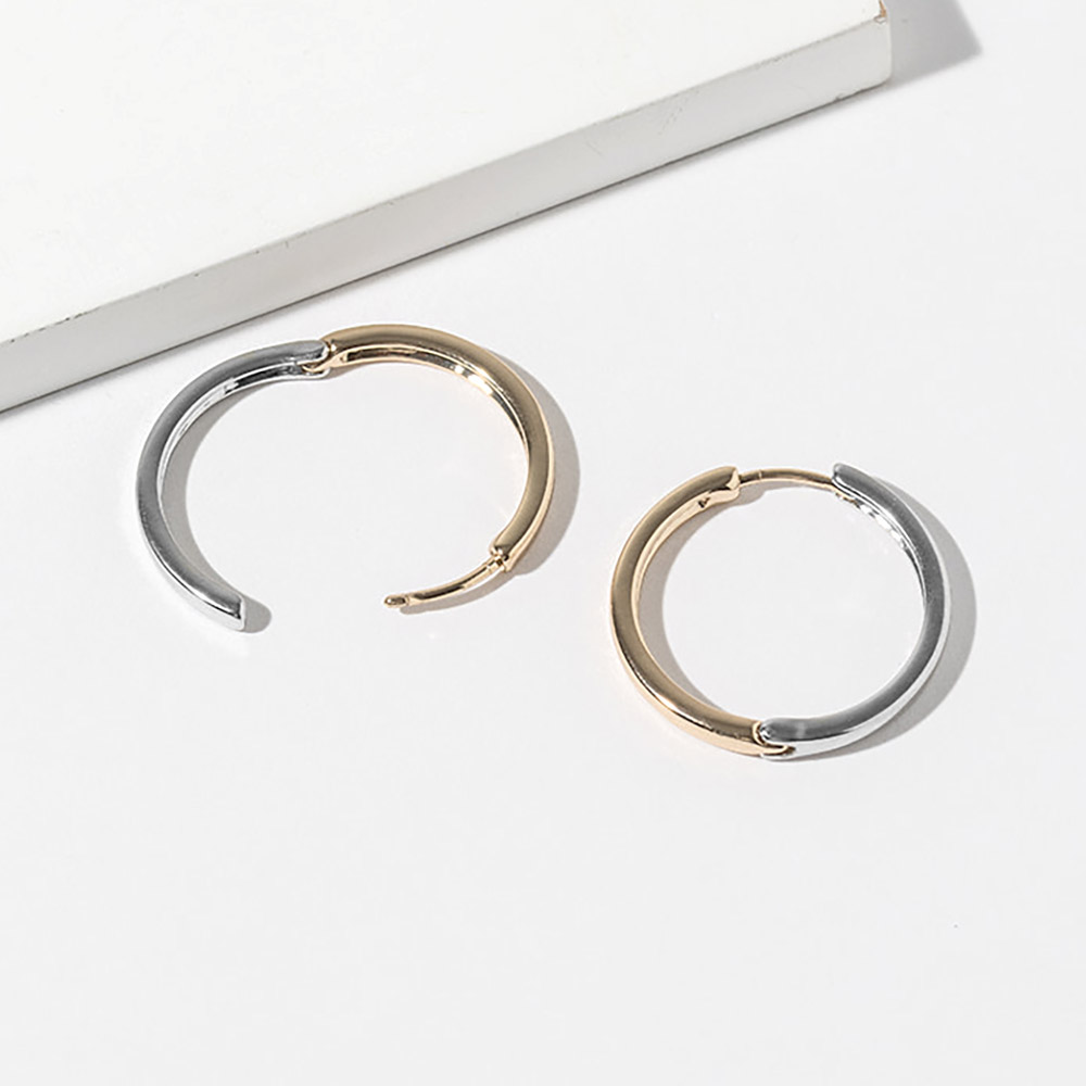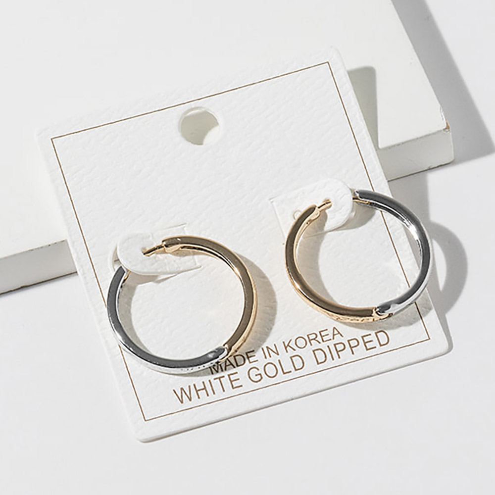 • Timeless classic hoop earrings featuring a smooth rounded silhouette with a modern dual-tone design and secure post closure. Perfect for everyday wear, office looks, and effortless styling, these versatile hoops offer balanced contrast, clean lines, and polished elegance for a refined jewelry collection.