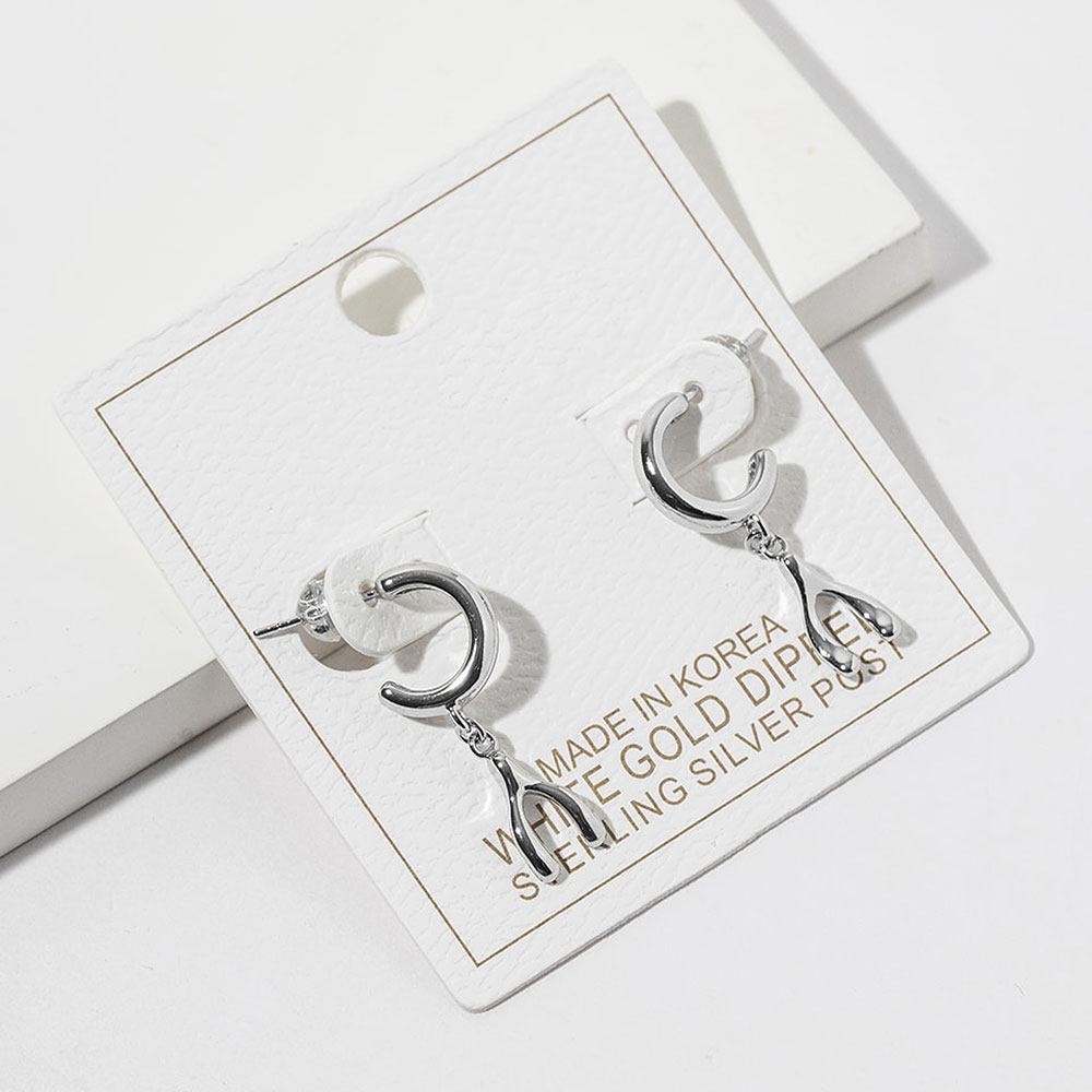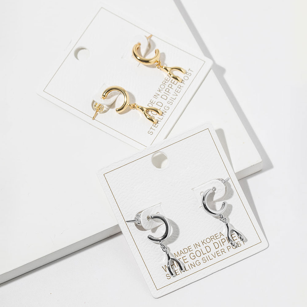 • Crescent hoop drop earrings featuring a sleek curved silhouette accented with a delicate wishbone charm. Designed for effortless styling, these lightweight earrings add subtle movement and modern elegance to everyday looks, boutique collections, and gift-ready accessory assortments.