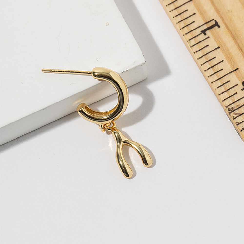 Gold Dipped Wishbone Drop Dangle Mini Hoop Earrings