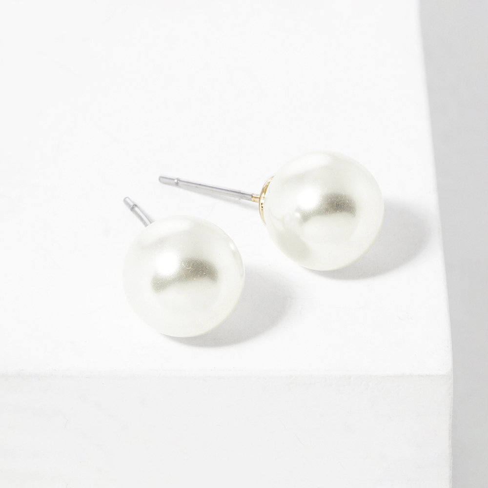 Details • Size : 10 mm • Post Back • Go big with timeless elegance—these oversized pearl stud earrings are designed to make a statement. Featuring a smooth round surface with a radiant sheen, they bring sophistication and glamour to any look. Perfect for parties, special occasions, or elevating everyday outfits, these lightweight studs are both bold and classic. A must-have accessory for anyone who loves standout jewelry with timeless appeal. • Lead and Nickel Compliant