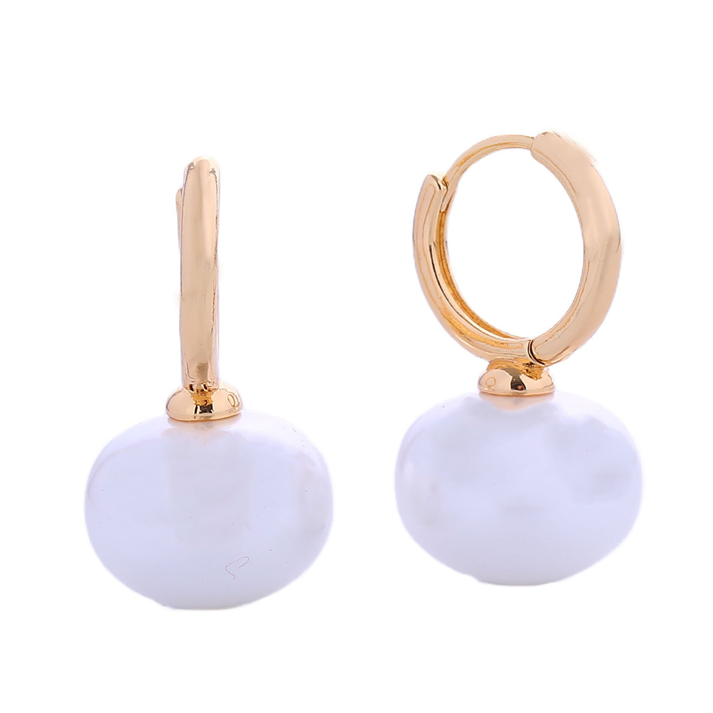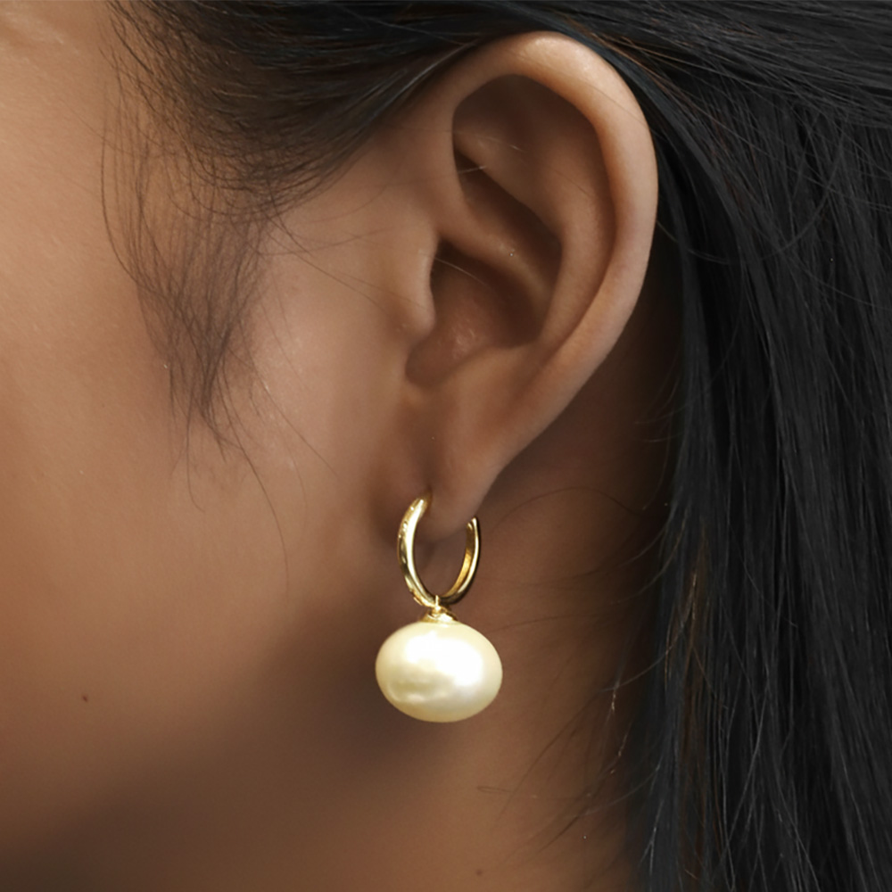 Details • Size : 0.7" X 1" • Huggie Back • Sophisticated hoop earrings featuring a smooth pearl drop charm for timeless elegance. Designed to complement any outfit, these earrings are perfect for weddings, evening events, or adding a touch of refinement to your everyday style. • Brass • Gold Dipped • Hypoallergenic • Lead and Nickel Compliant • Made In Korea