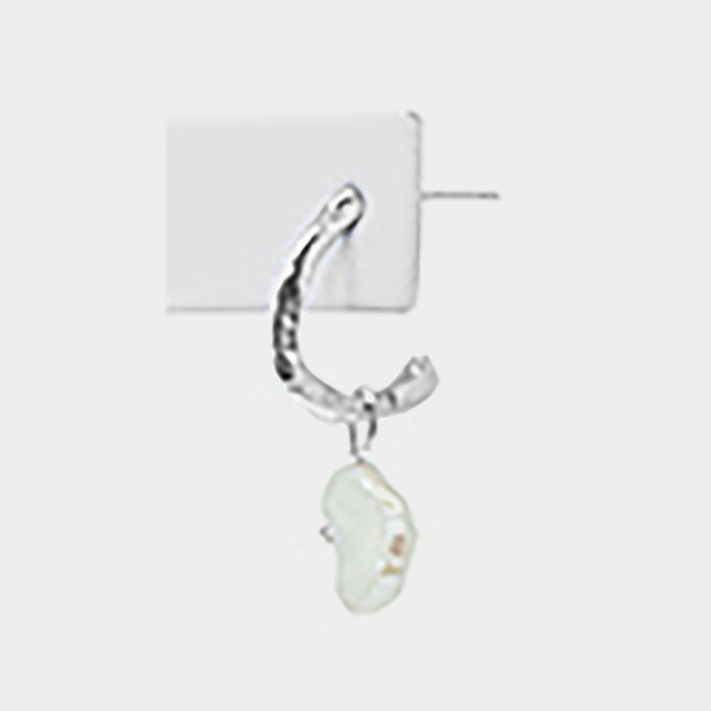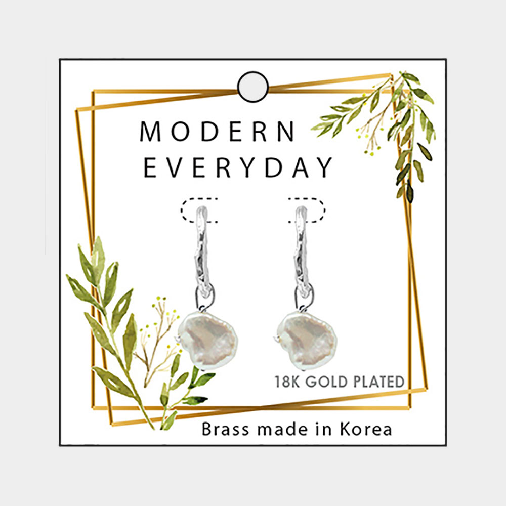 18K White Gold Plated Brass Half Metal Triangle Pearl Dangle Earrings