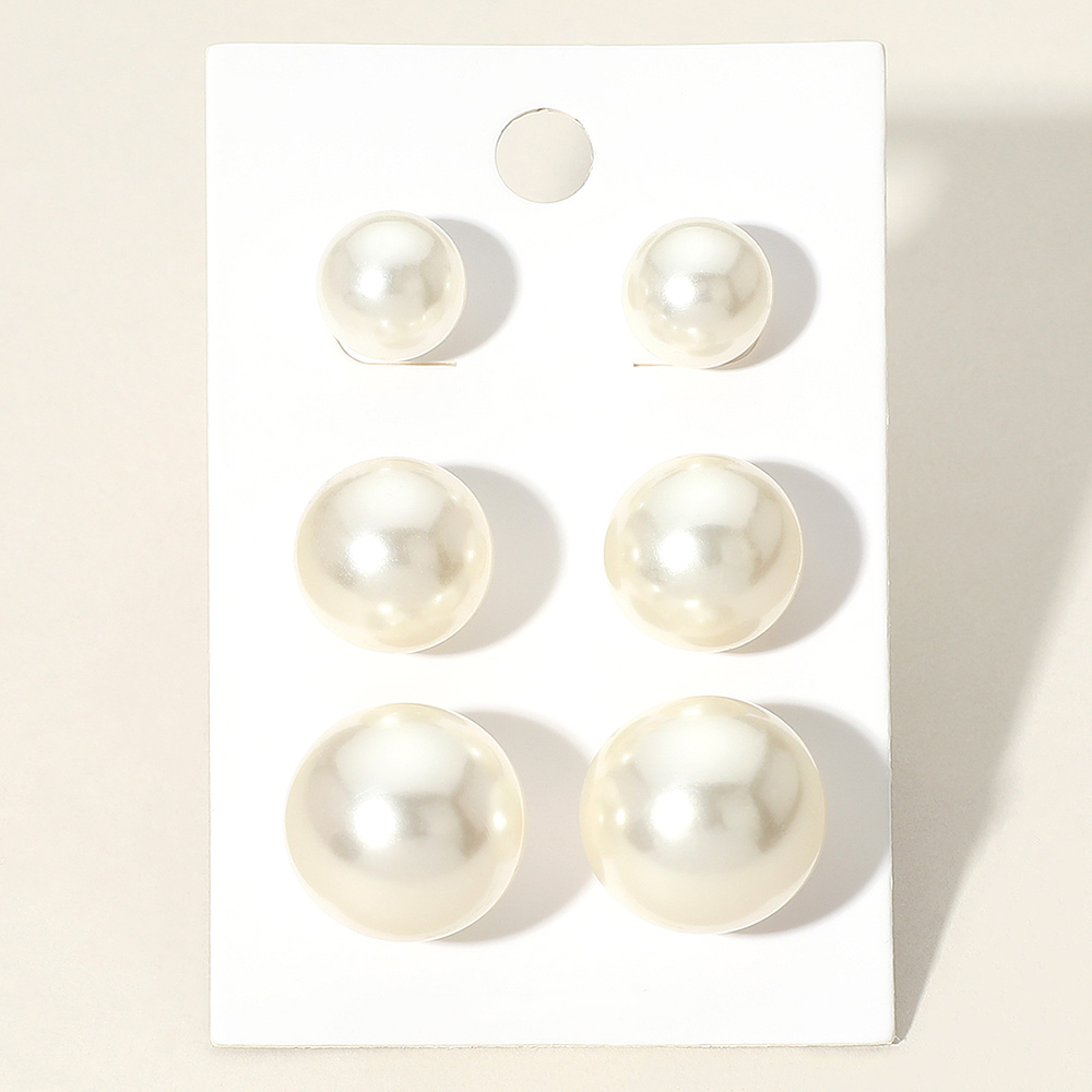 3Pairs - Pearl Stud Earring Set