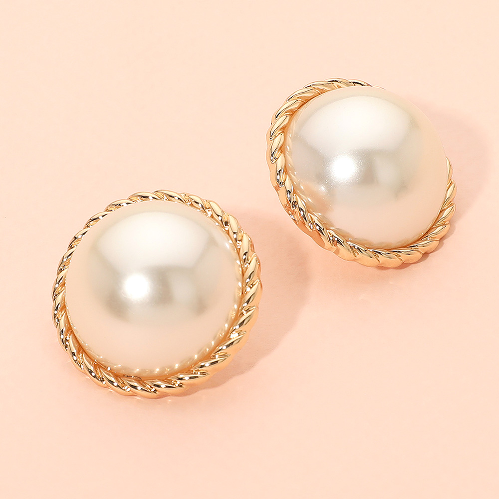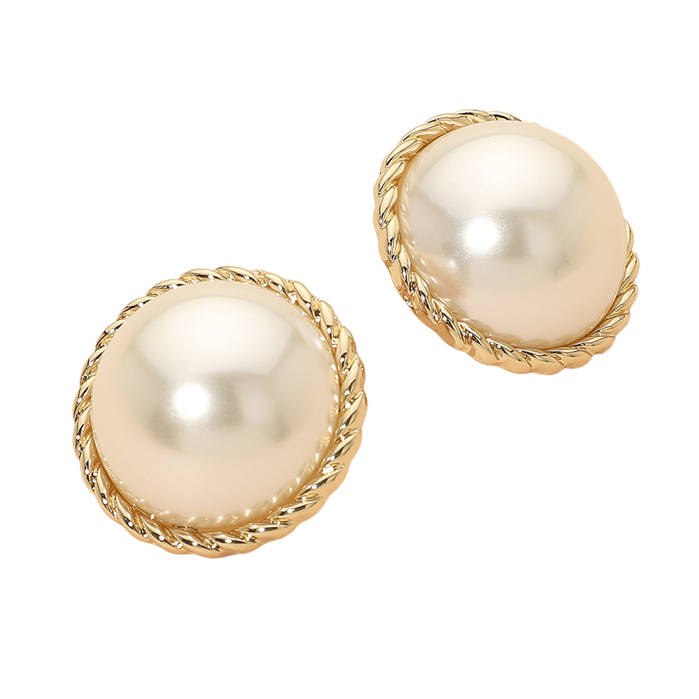 Details • Size : 1.2" X 1.2" • Post Back • These classic round pearl feature a polished, raised centerpiece framed by a twisted border, creating a timeless and elegant silhouette. Lightweight and refined, they offer a versatile touch that enhances both everyday style and special-occasion looks with effortless sophistication. • Hypoallergenic • Lead and Nickel Compliant