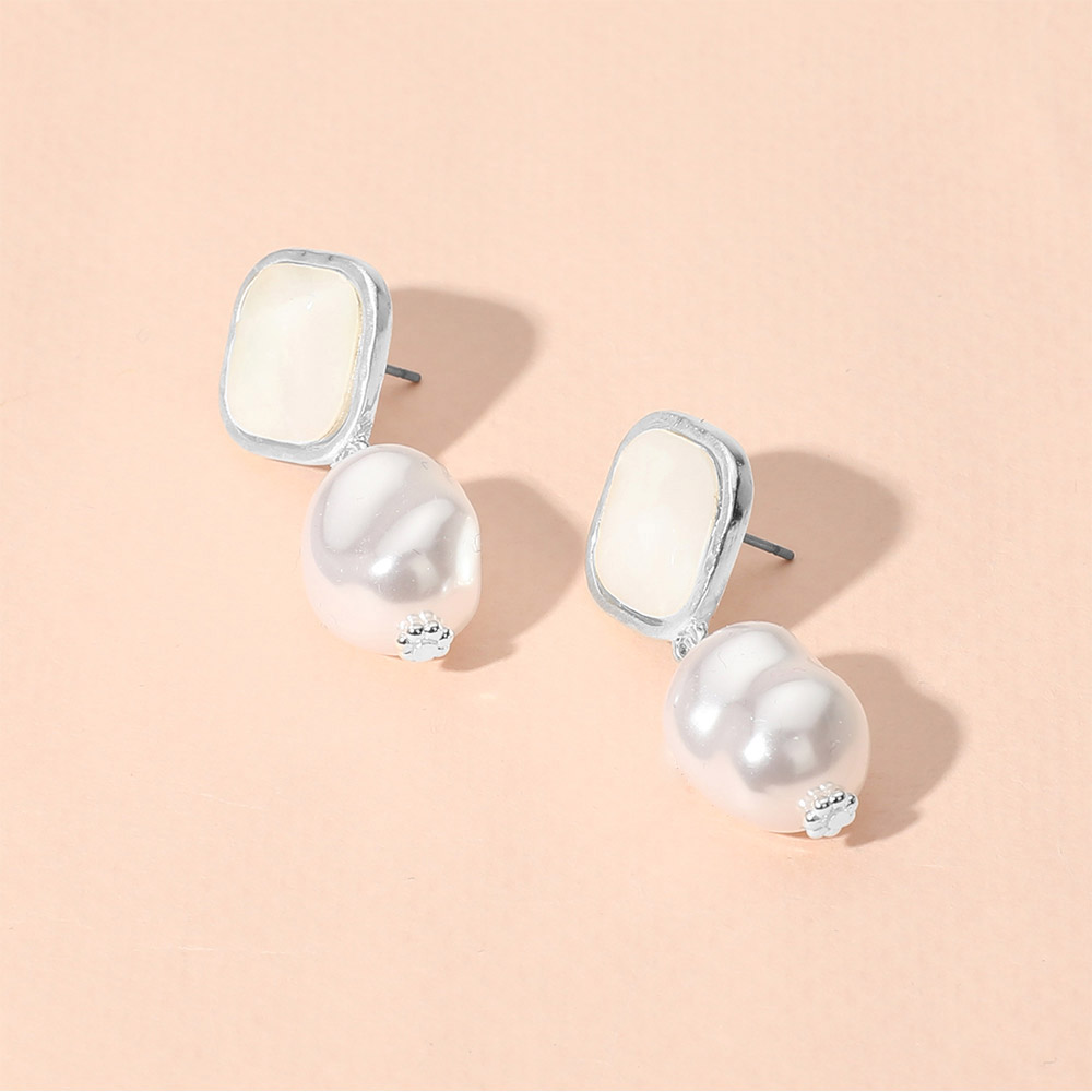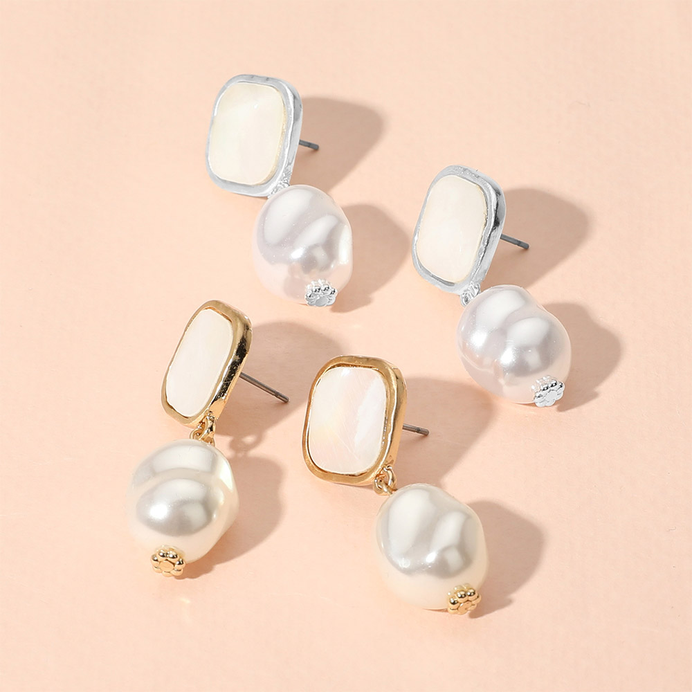 Geometric Pearl Dangle Earrings
