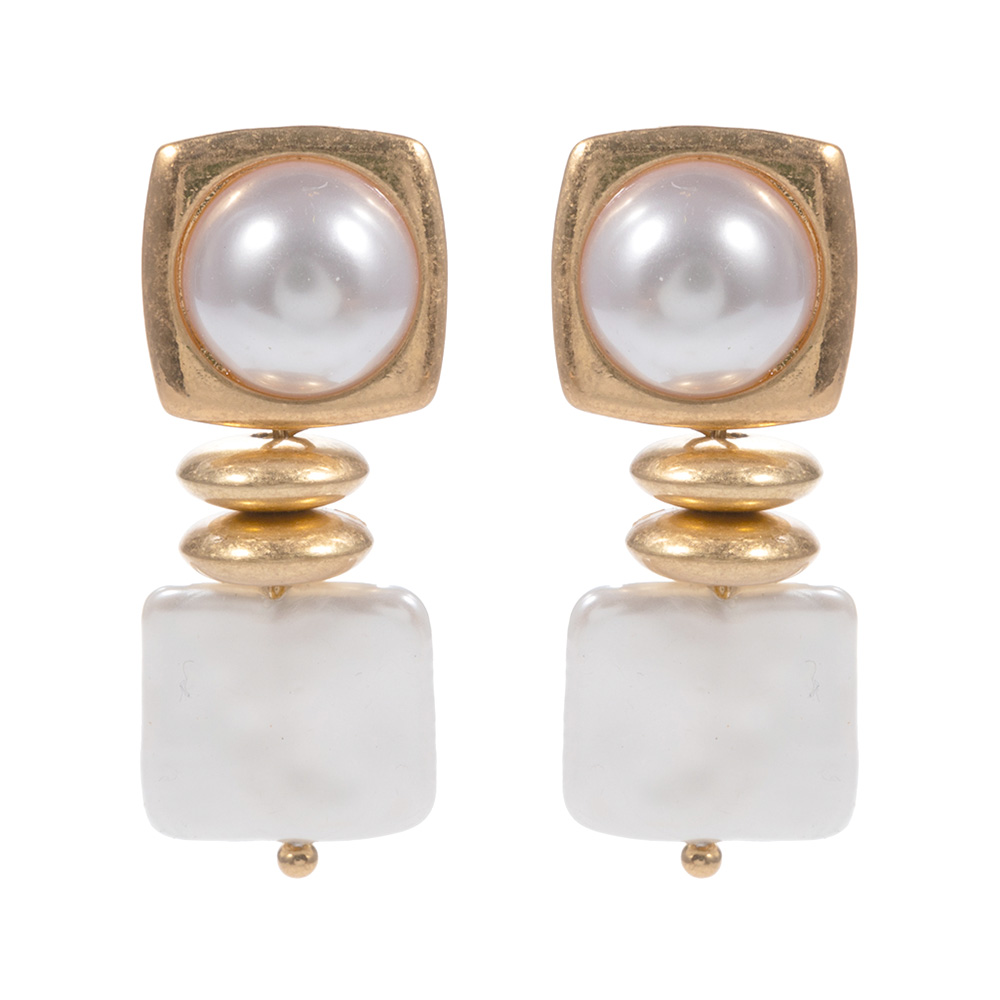 Details • Size : 0.6" X 1.6" • Titanium Post Back • Add modern elegance with these geometric drop stud earrings, combining a smooth upper stud with a structured hanging shape for subtle movement and style. Lightweight and easy to wear, they transition effortlessly from everyday outfits to polished evening looks. • Lead and Nickel Compliant • Hypoallergenic