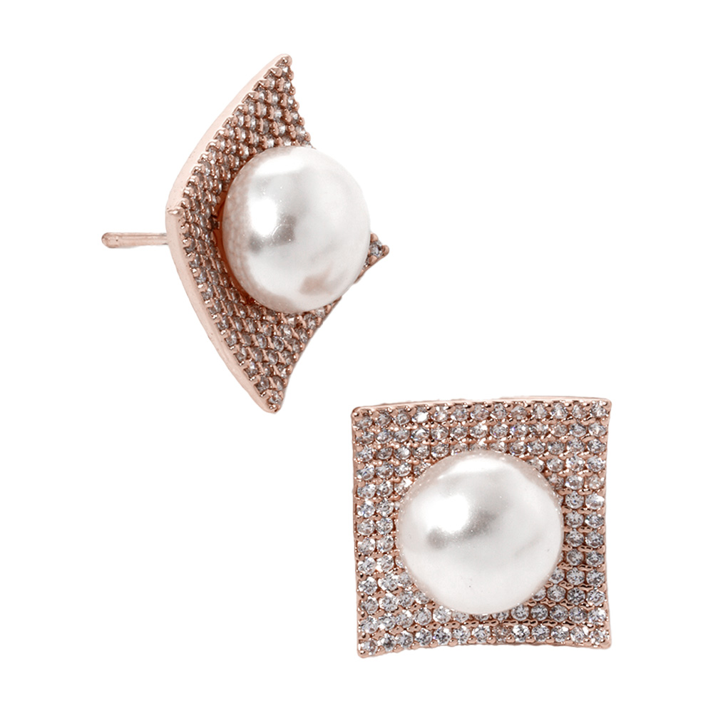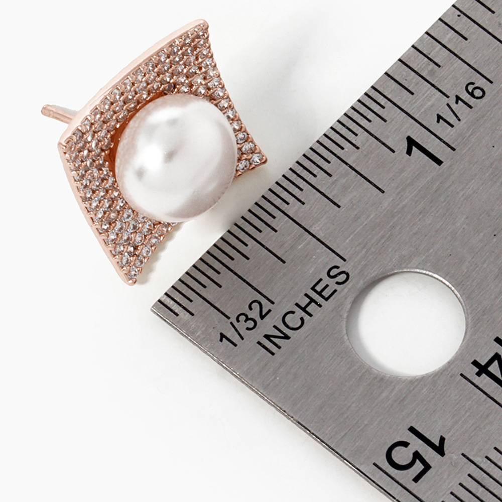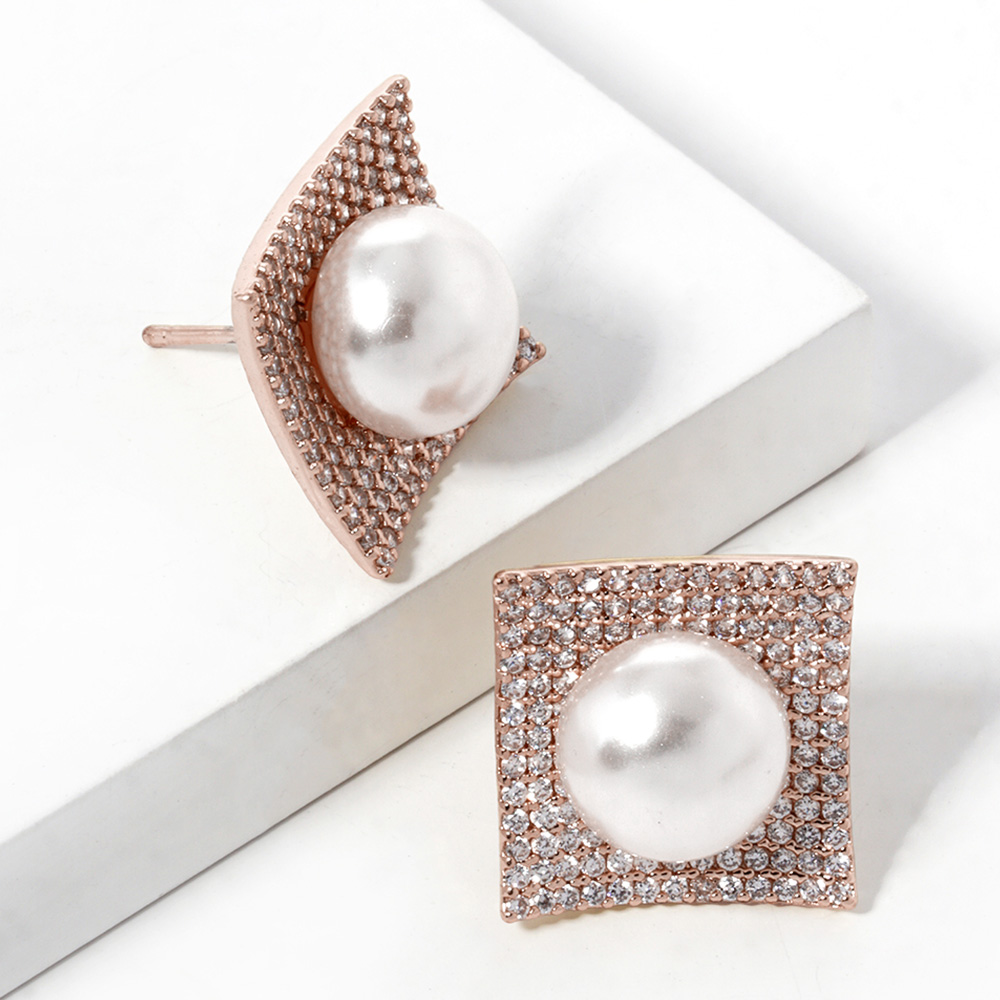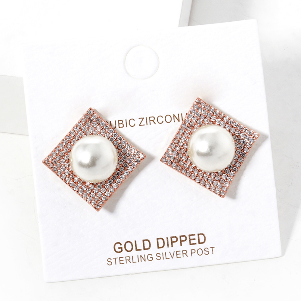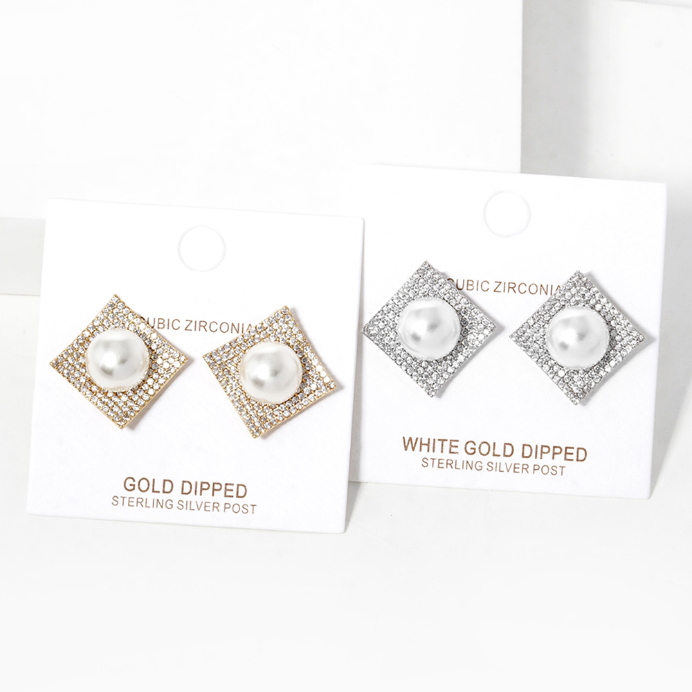 Gold Dipped Cubic Zirconia Pearl Post Earrings