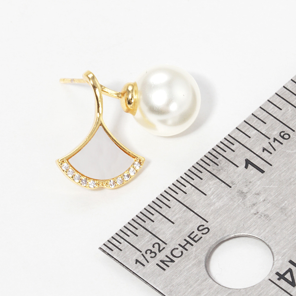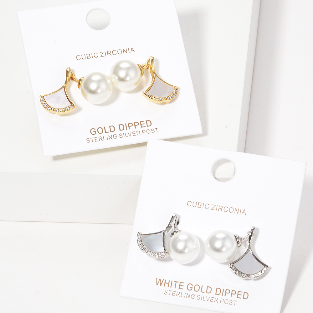 White Gold Dipped Pearl Mother of Pearl Ginkgo Earrings