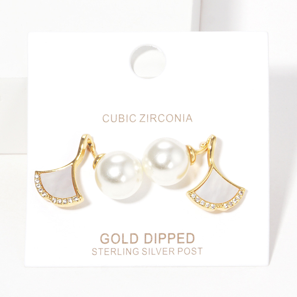 Gold Dipped Pearl Mother of Pearl Ginkgo Earrings