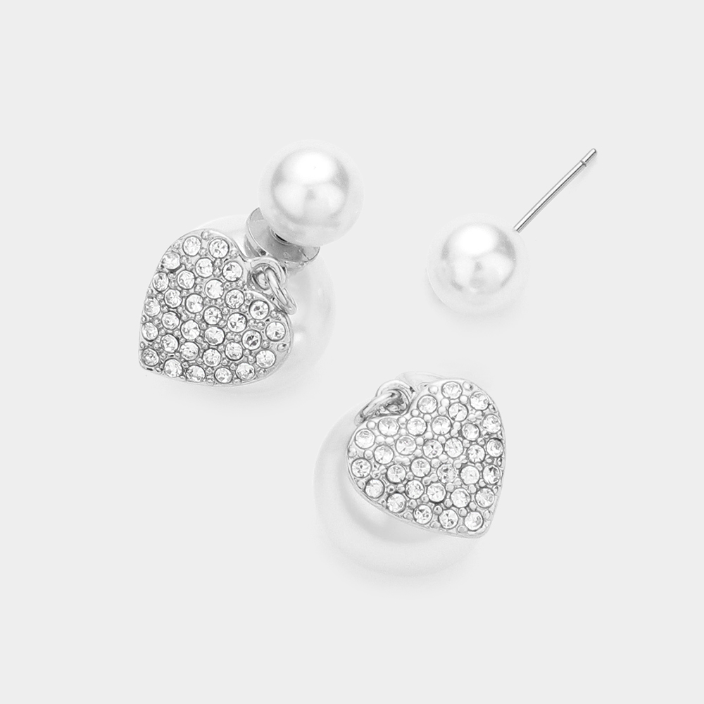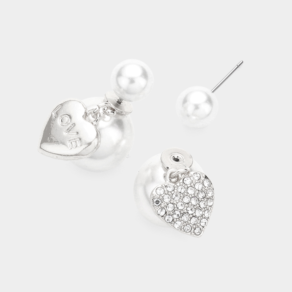 Heart Pointed Double Sided Pearl Peekaboo Earrings