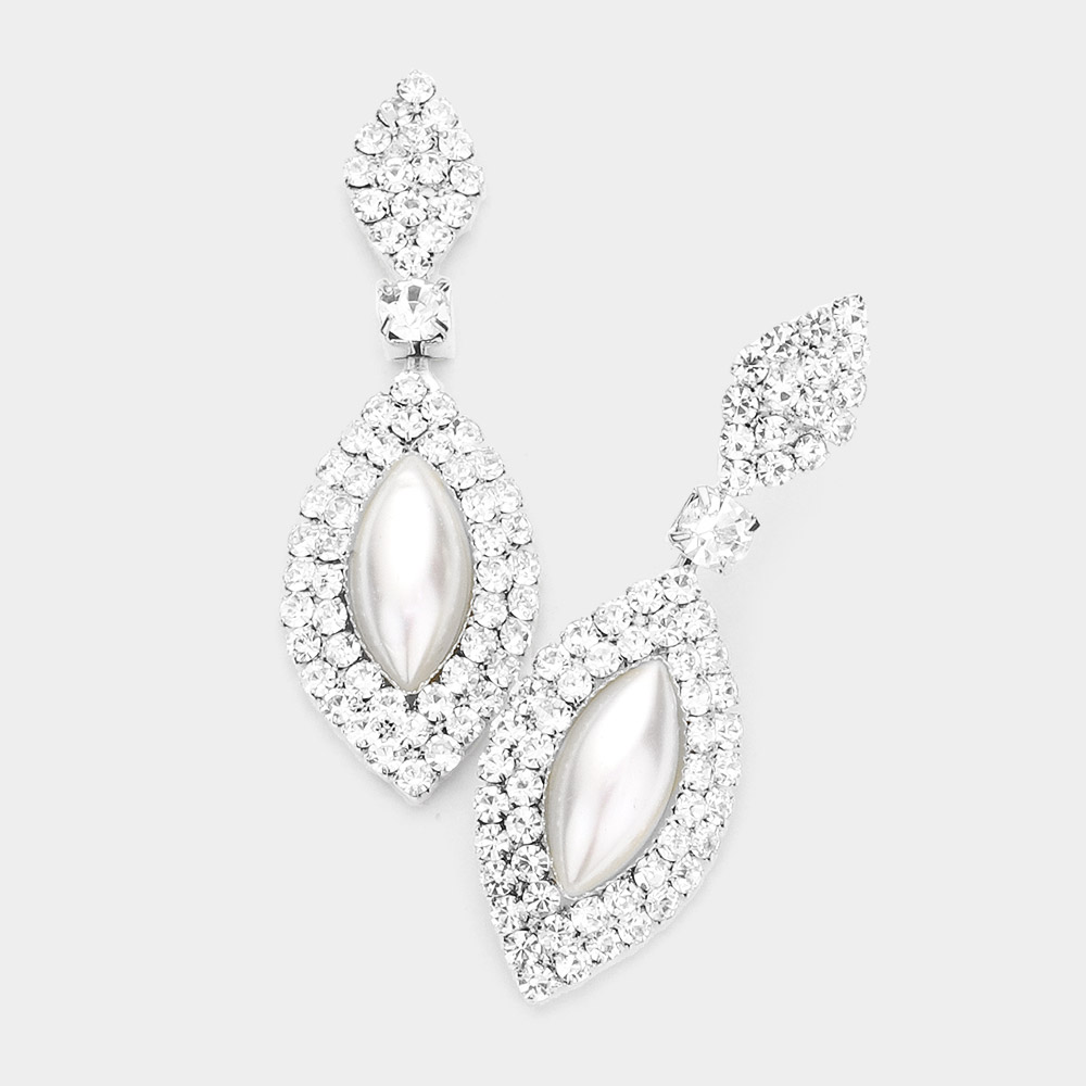 Marquise Pearl Accented Rhinestone Trim Dangle Evening Earrings