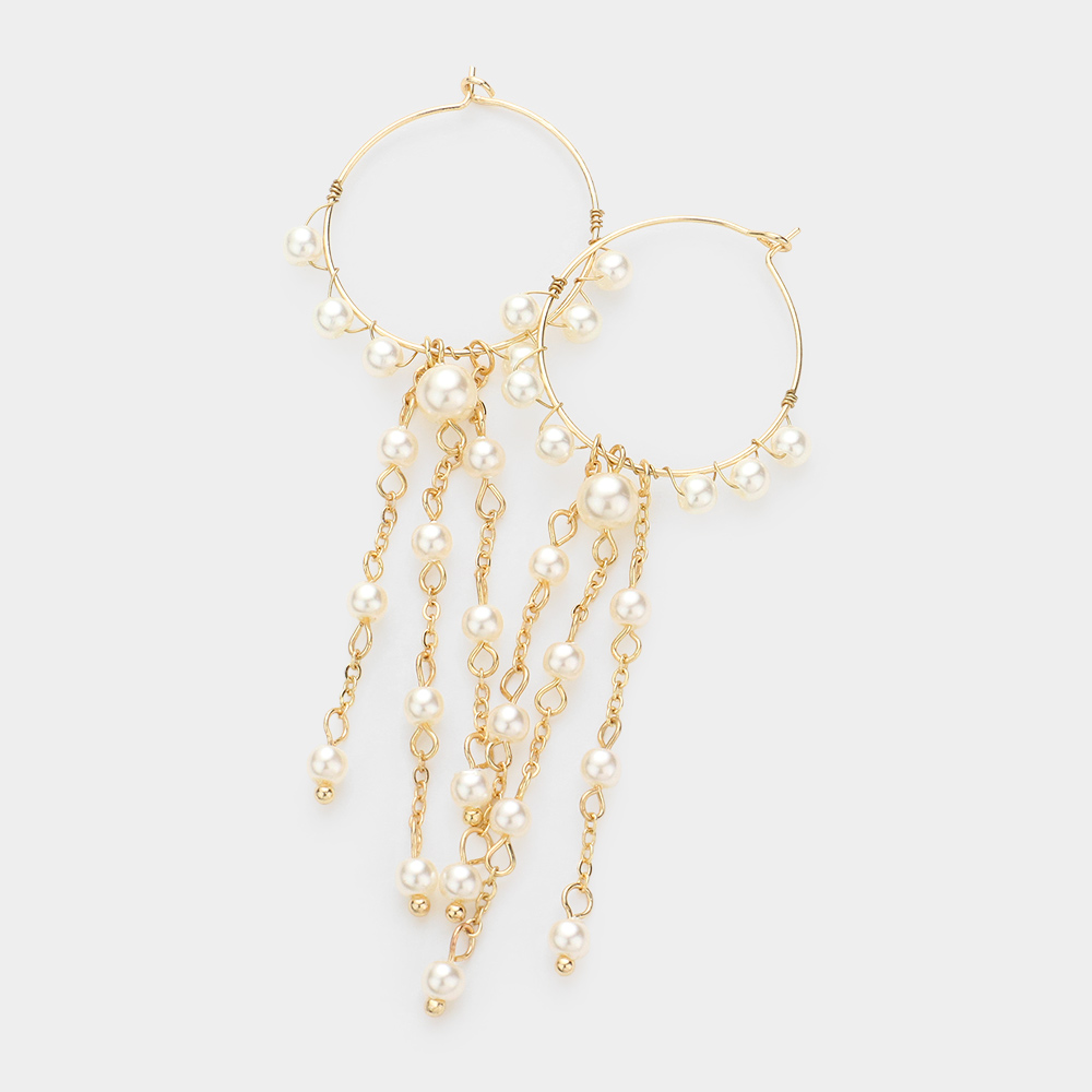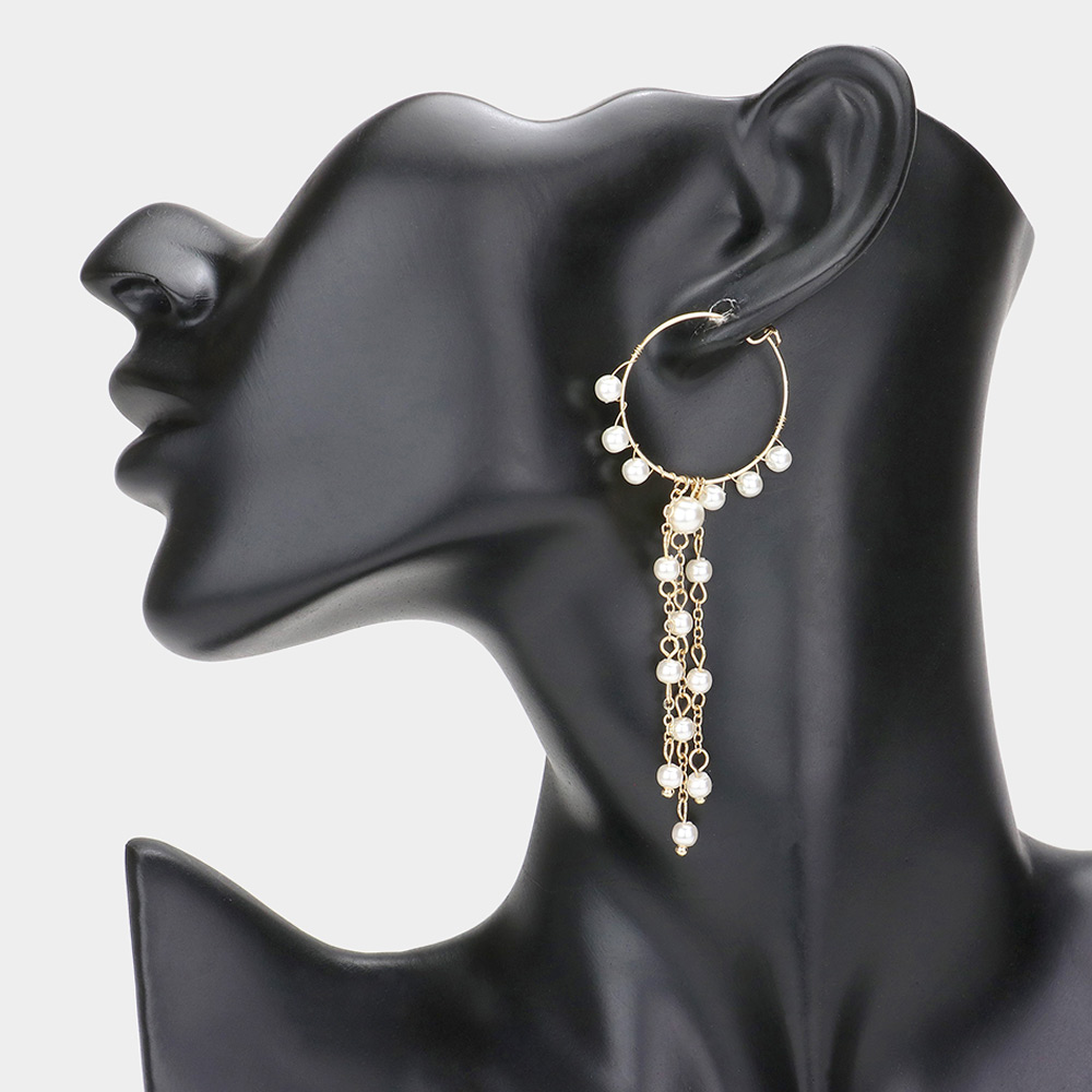 Pearl Accented Open Circle Fringe Dropdown Earrings