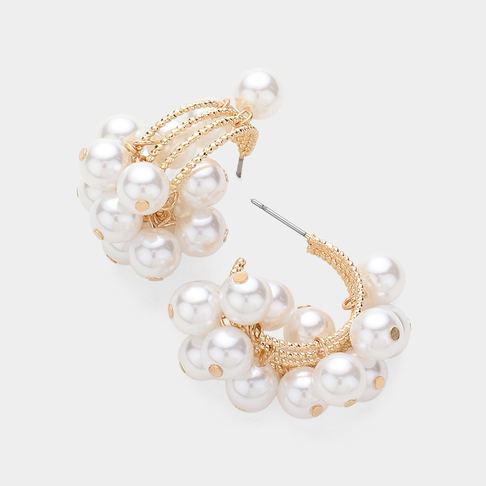 Bold Metal Ball Charm Pearl Beaded Stretch Bracelet