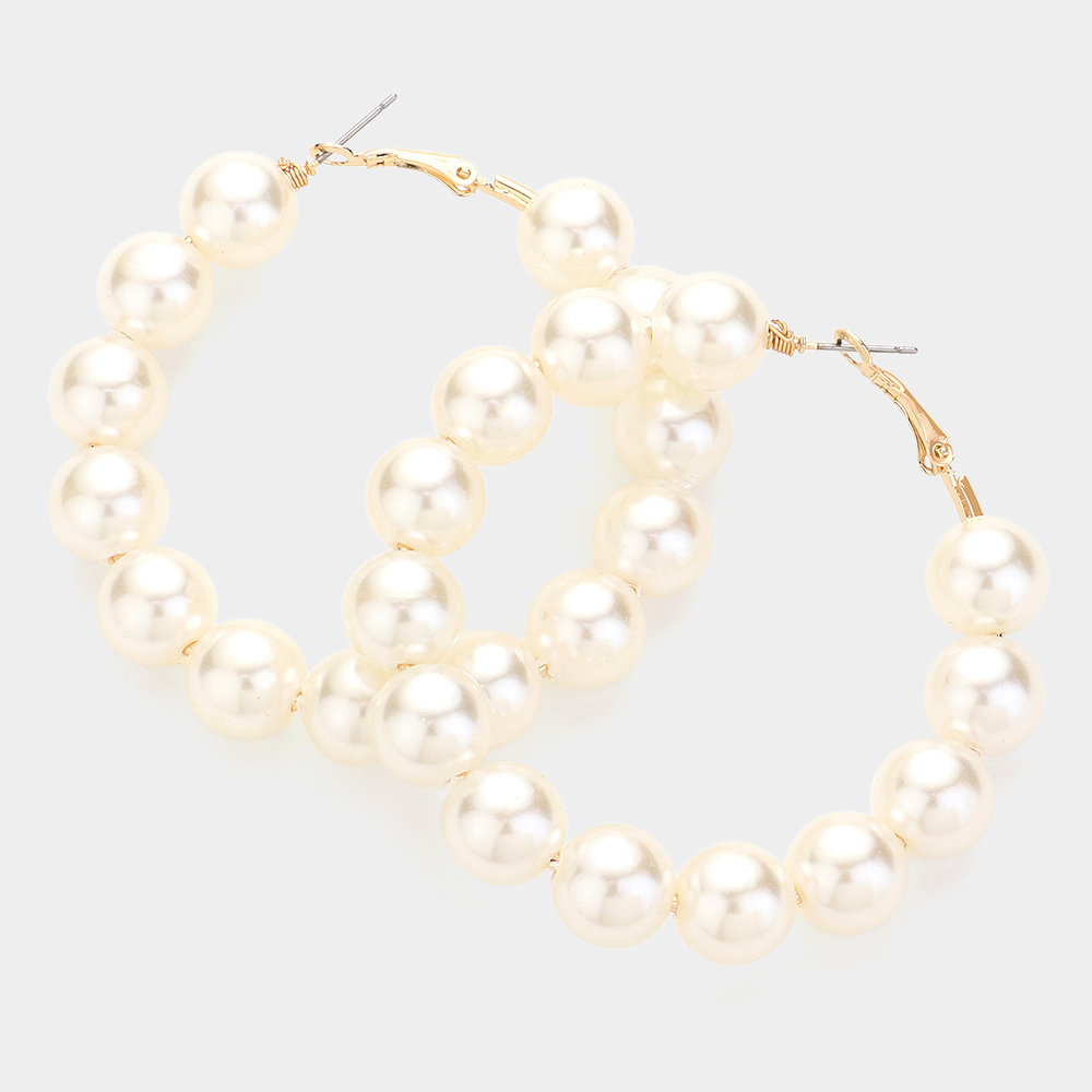 Details • Size : 2.75" X 2.75" • Omega Back • Elegant hoop earrings adorned with smooth round beads in a polished design. Lightweight and refined, these versatile earrings add timeless charm to both casual and dressy looks. • Lead and Nickel Compliant