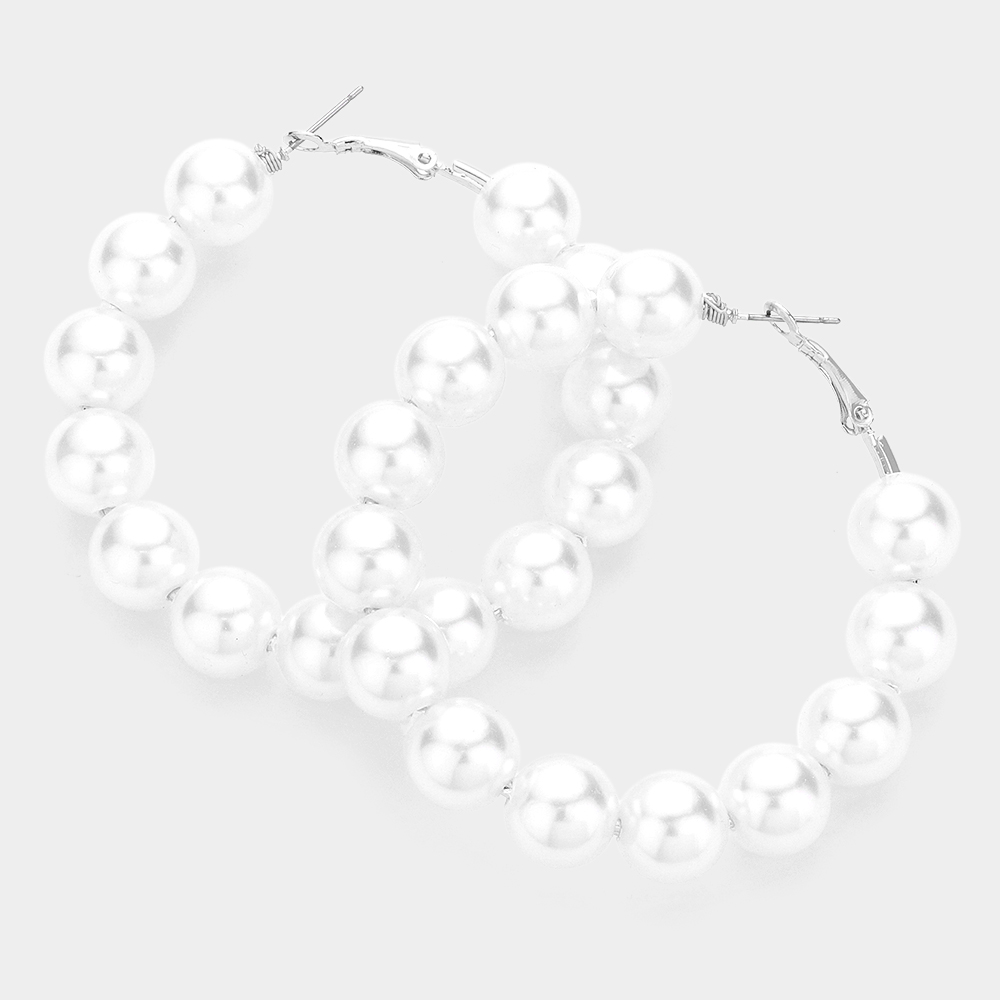 Details • Size : 2.75" X 2.75" • Omega Back • Elegant hoop earrings adorned with smooth round beads in a polished design. Lightweight and refined, these versatile earrings add timeless charm to both casual and dressy looks. • Lead and Nickel Compliant