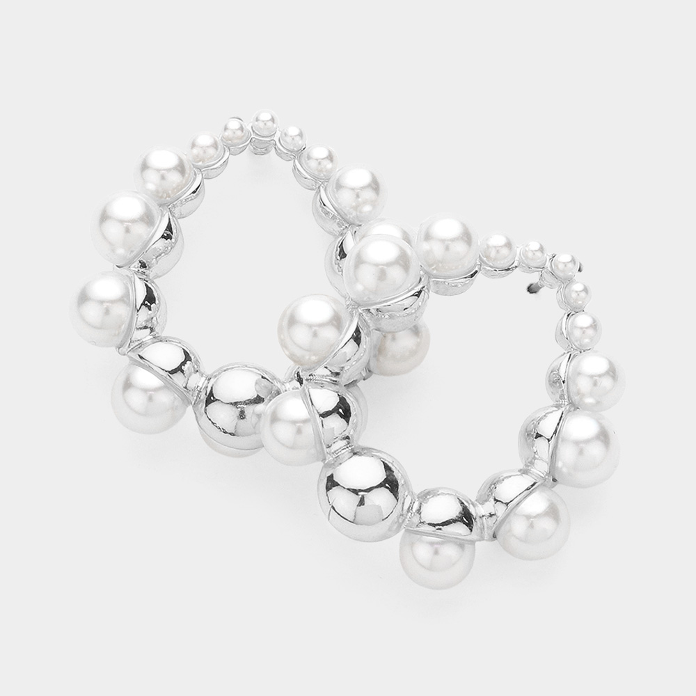Faux Leather Braided Vintage Metal Chain Round Pearl Dangle Earrings