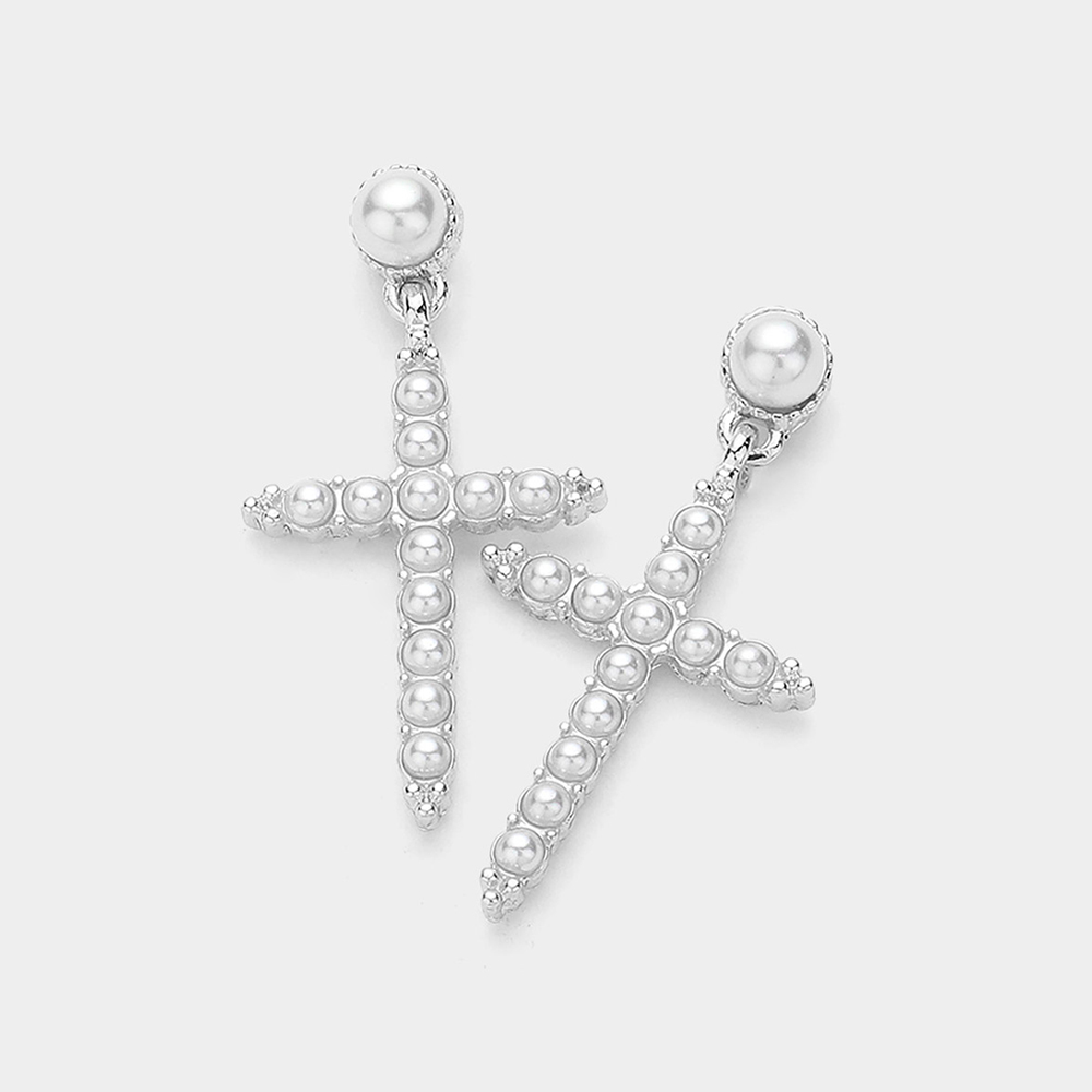 Pearl Cross Dangle Earrings