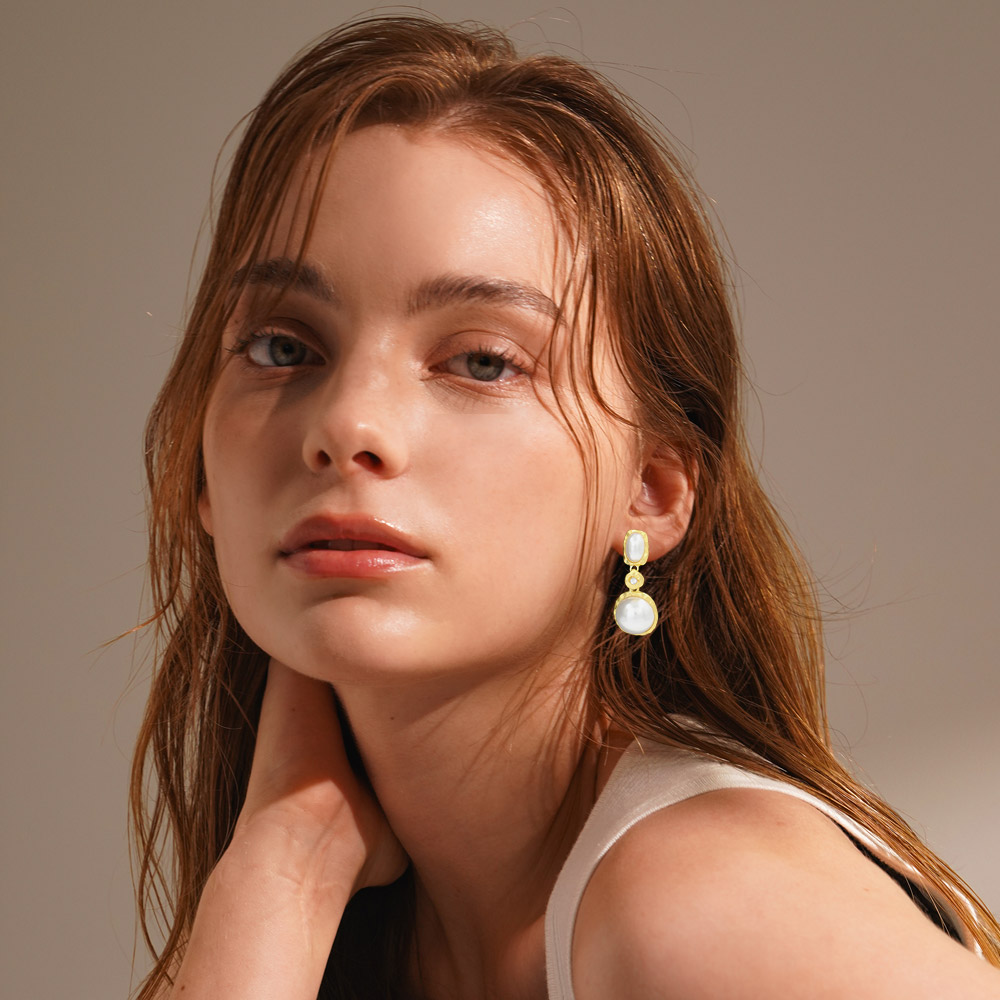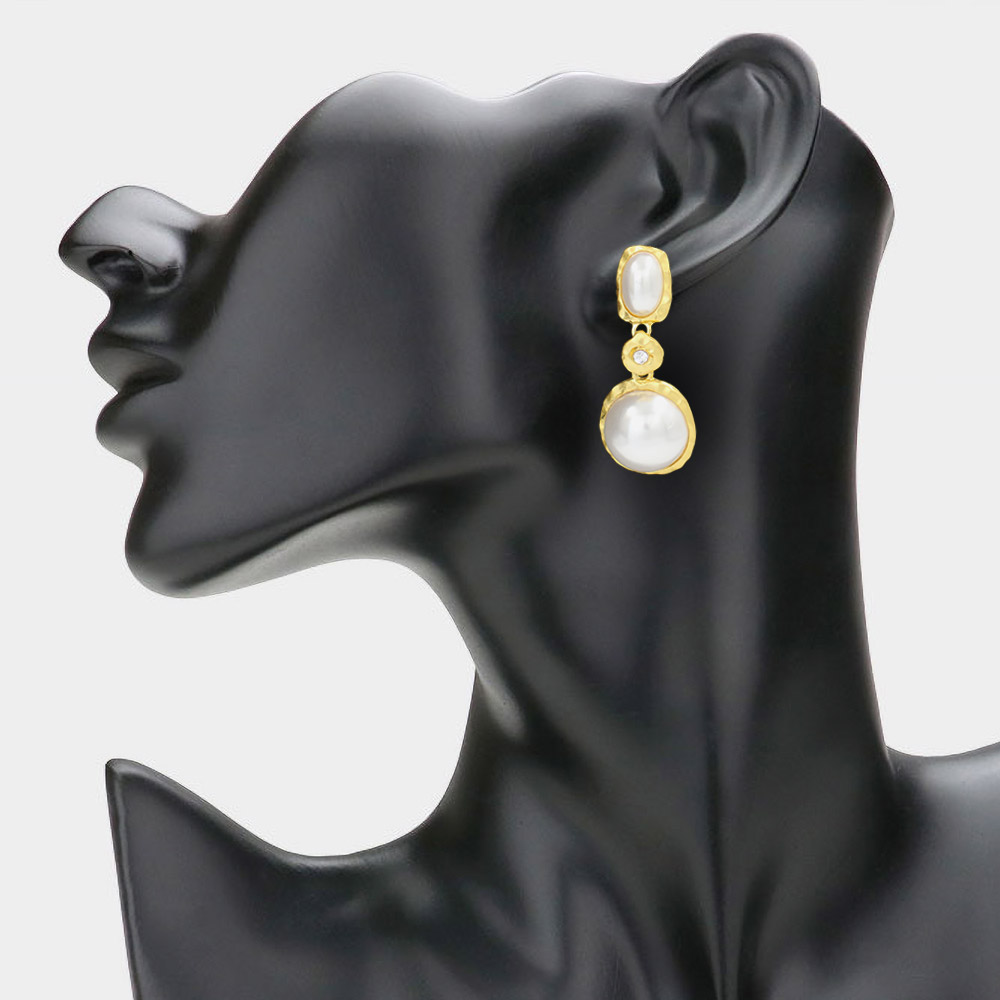 Gold Dipped Pearl Accent Marquise CZ Stone Embellished Floral Stud Earrings