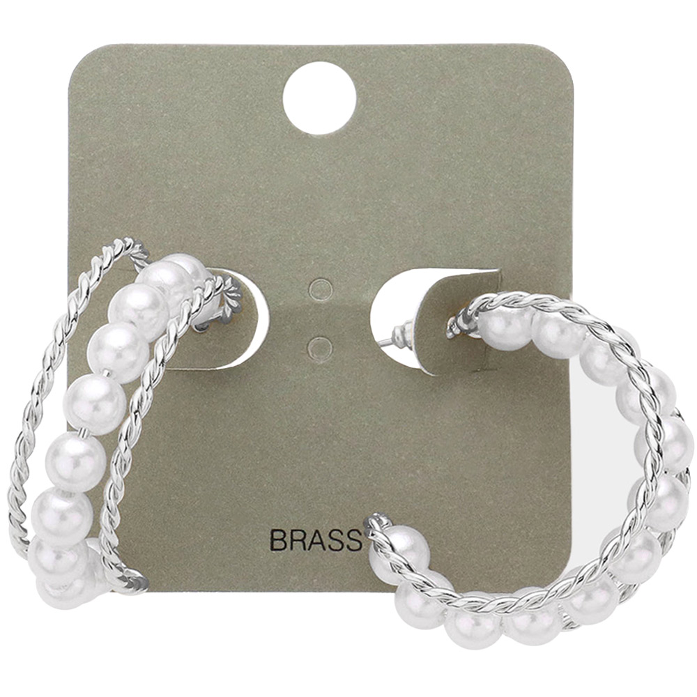 Pearl Detailed Brass Metal Split Hoop Earrings