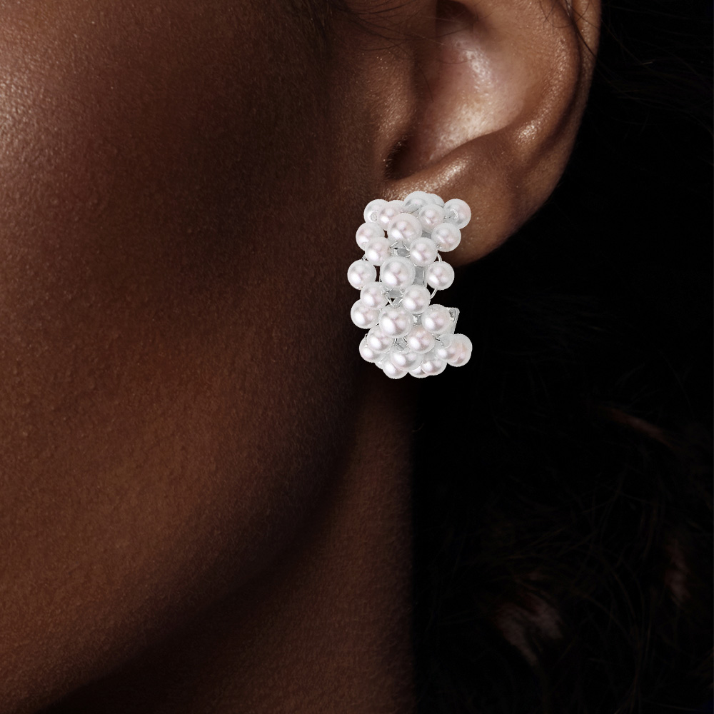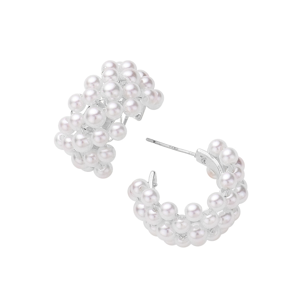 Oversized Pearl Rhinestone Bud Pointed Enamel Rim Metal Cutout Flower Earrings