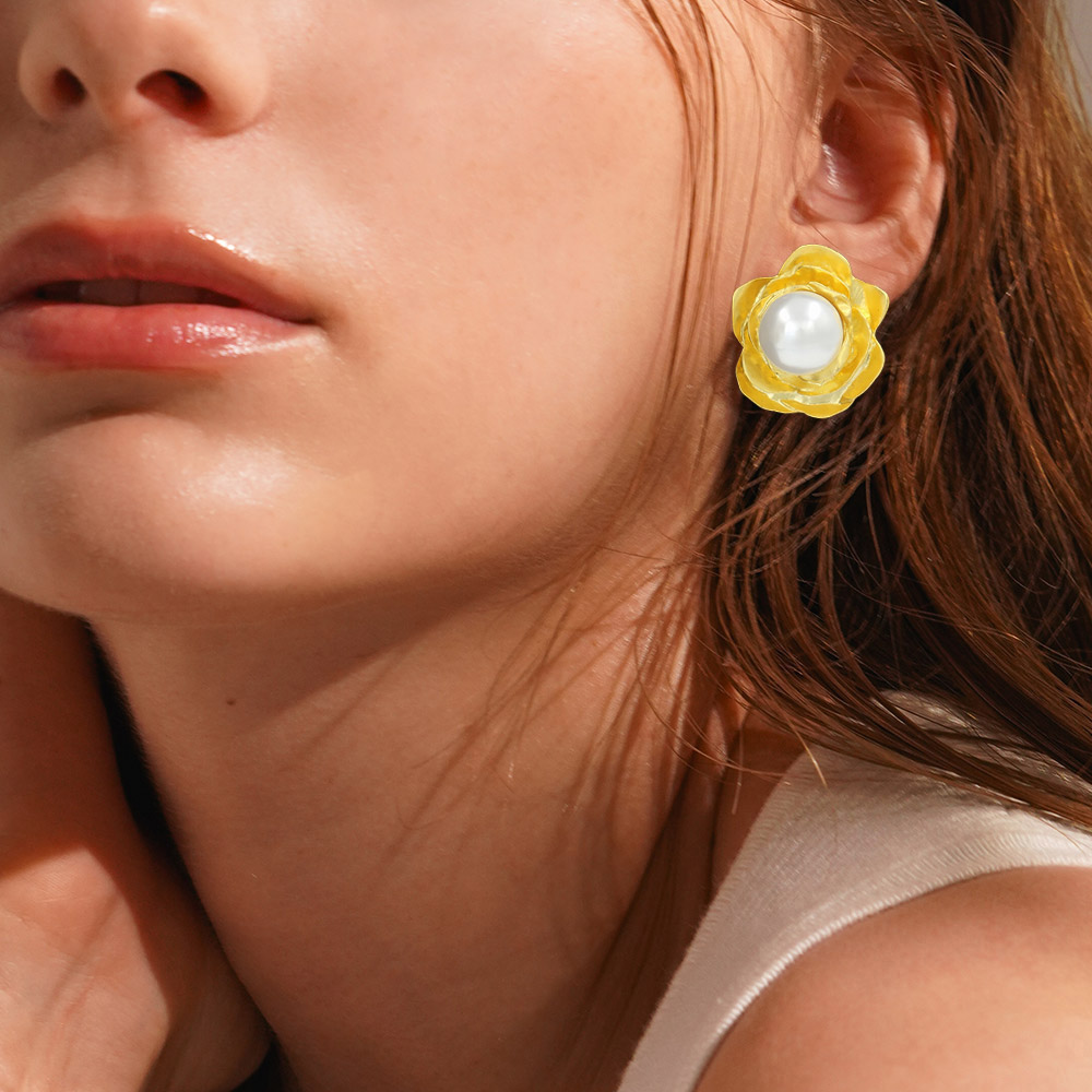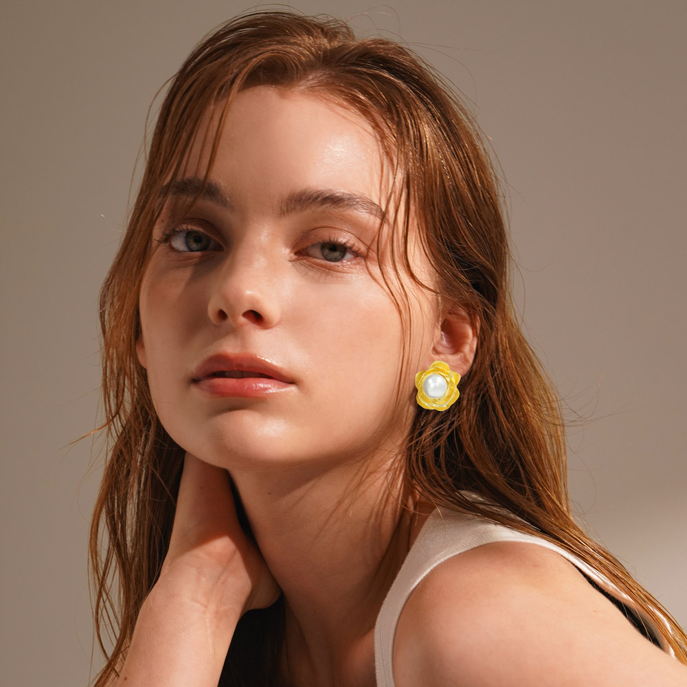 Rhinestone Paved Flower Accent Teardrop Dangle Evening Earrings