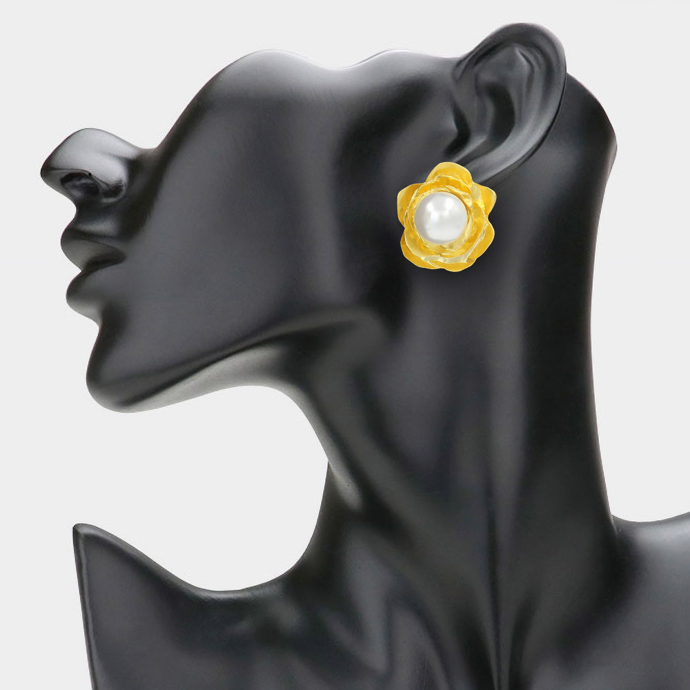 Metal Flower Rhinestone Pave Tassel Hoop Earrings
