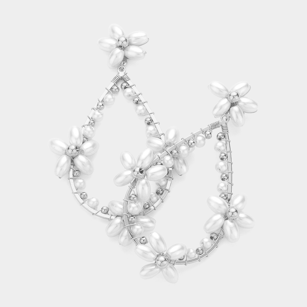 Pearl Centered Bling Studded Oversized Flower Pointed Necklace