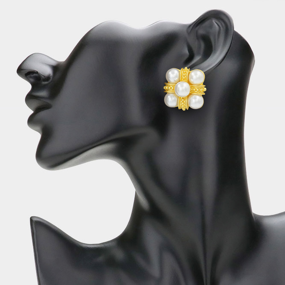 Marquise Stone Cluster Pearl Embellished Leaf Branch Necklace