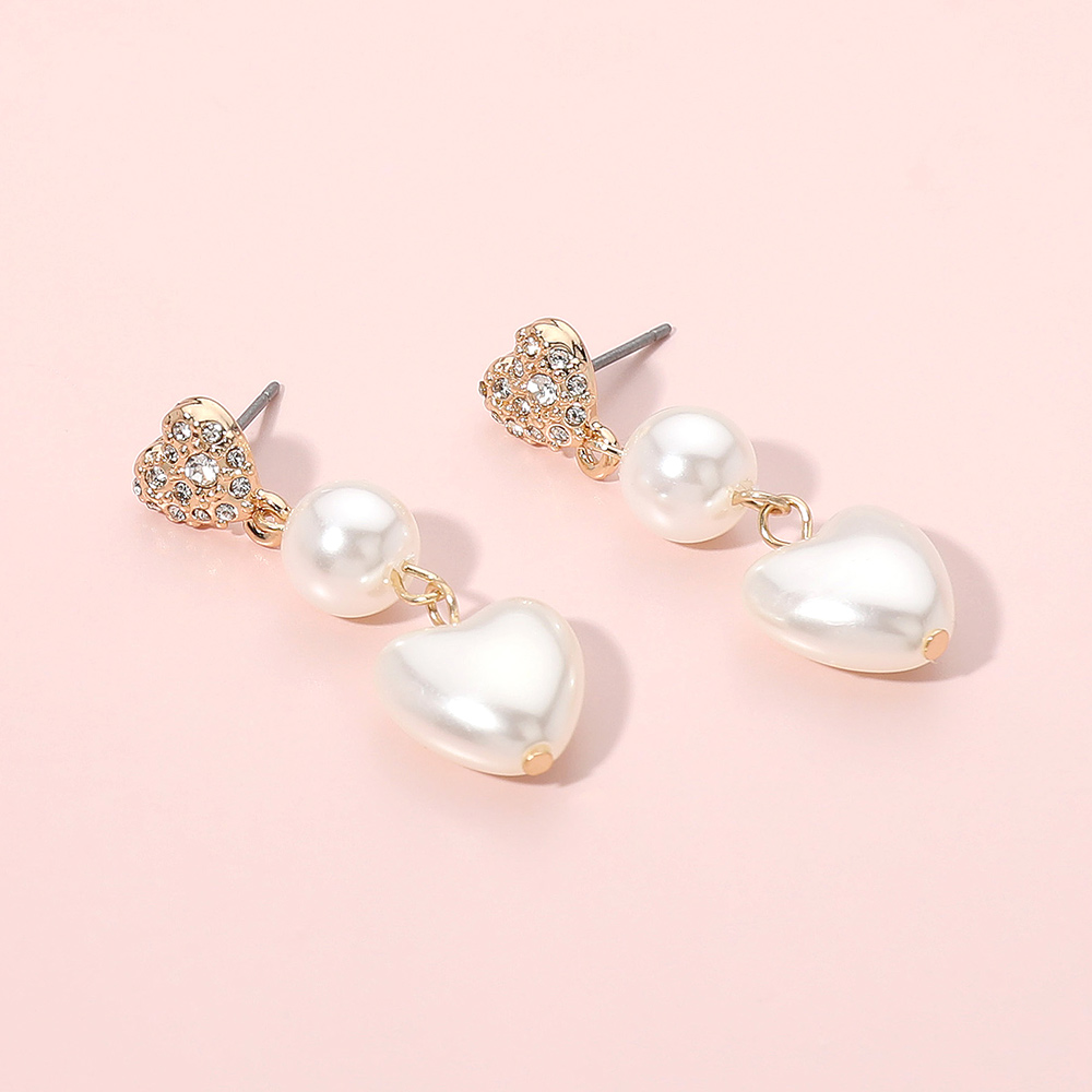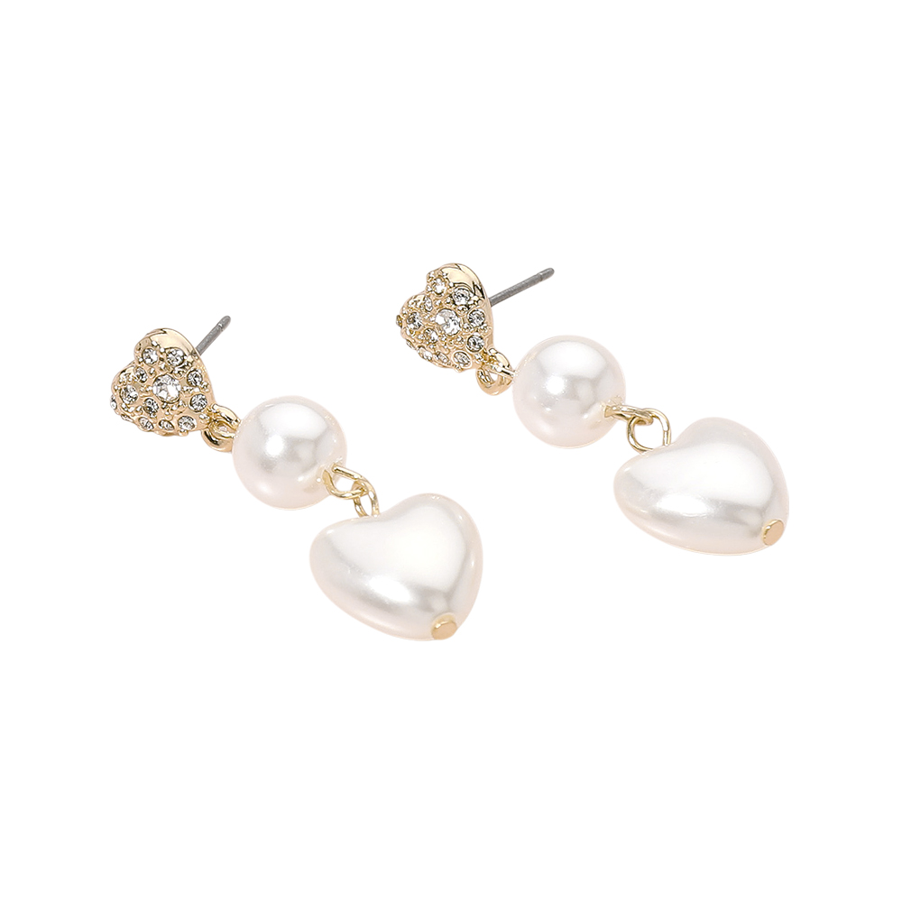 Pearl Heart Link Dropdown Dangle Earrings
