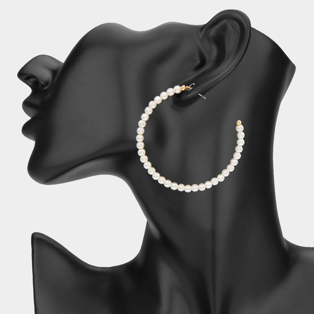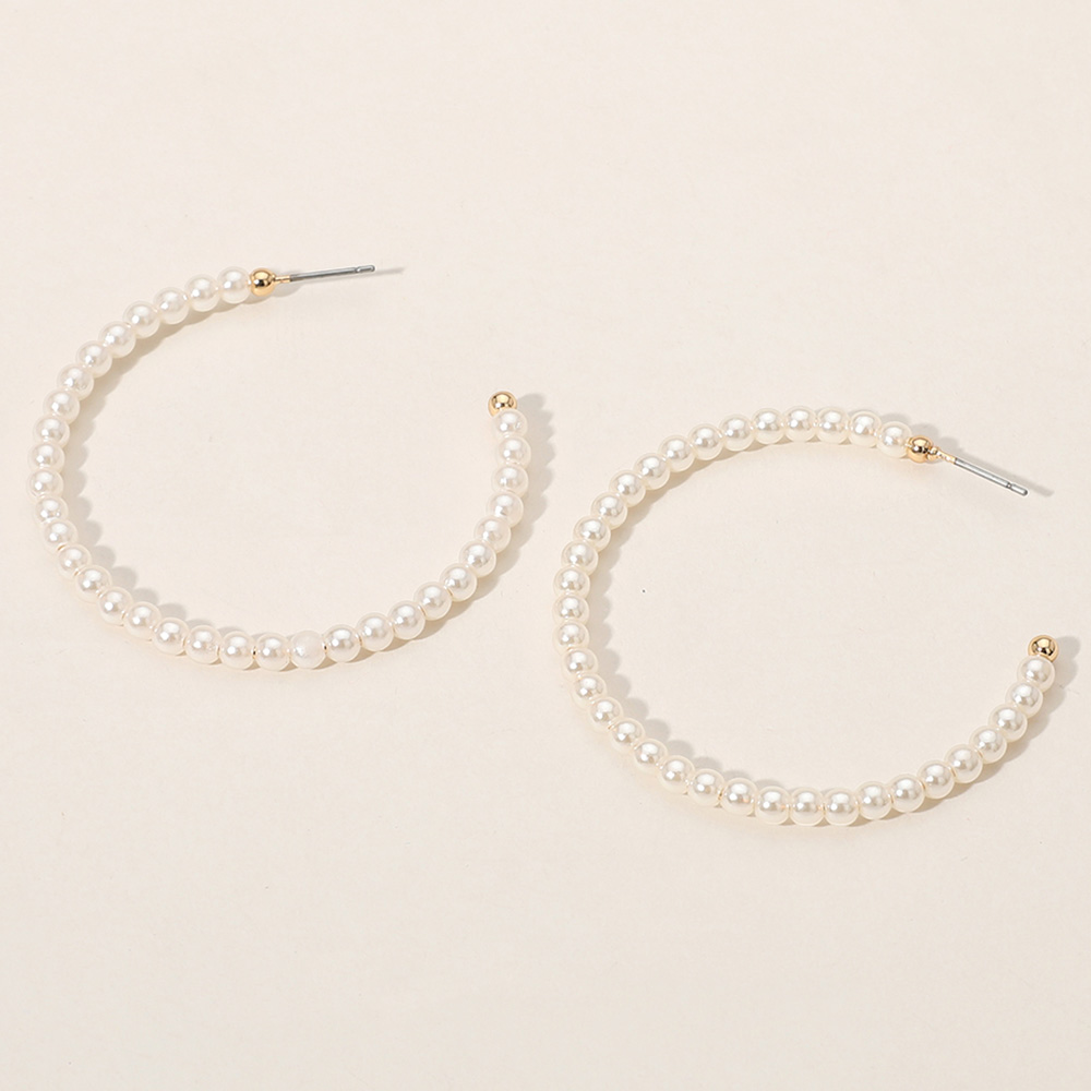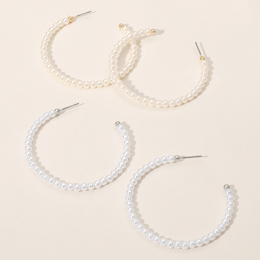 Details • Size : 2.1" X 2.1" • Post Back • Elevate your style with these timeless double row pearl-like hoop earrings. Featuring a refined circular silhouette, they blend sophistication with everyday versatility, making them the perfect accessory for both casual outfits and formal occasions. • Lead and Nickel Compliant