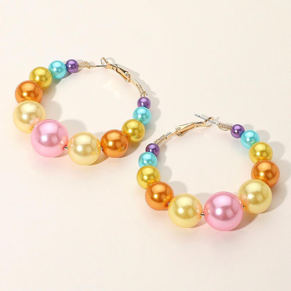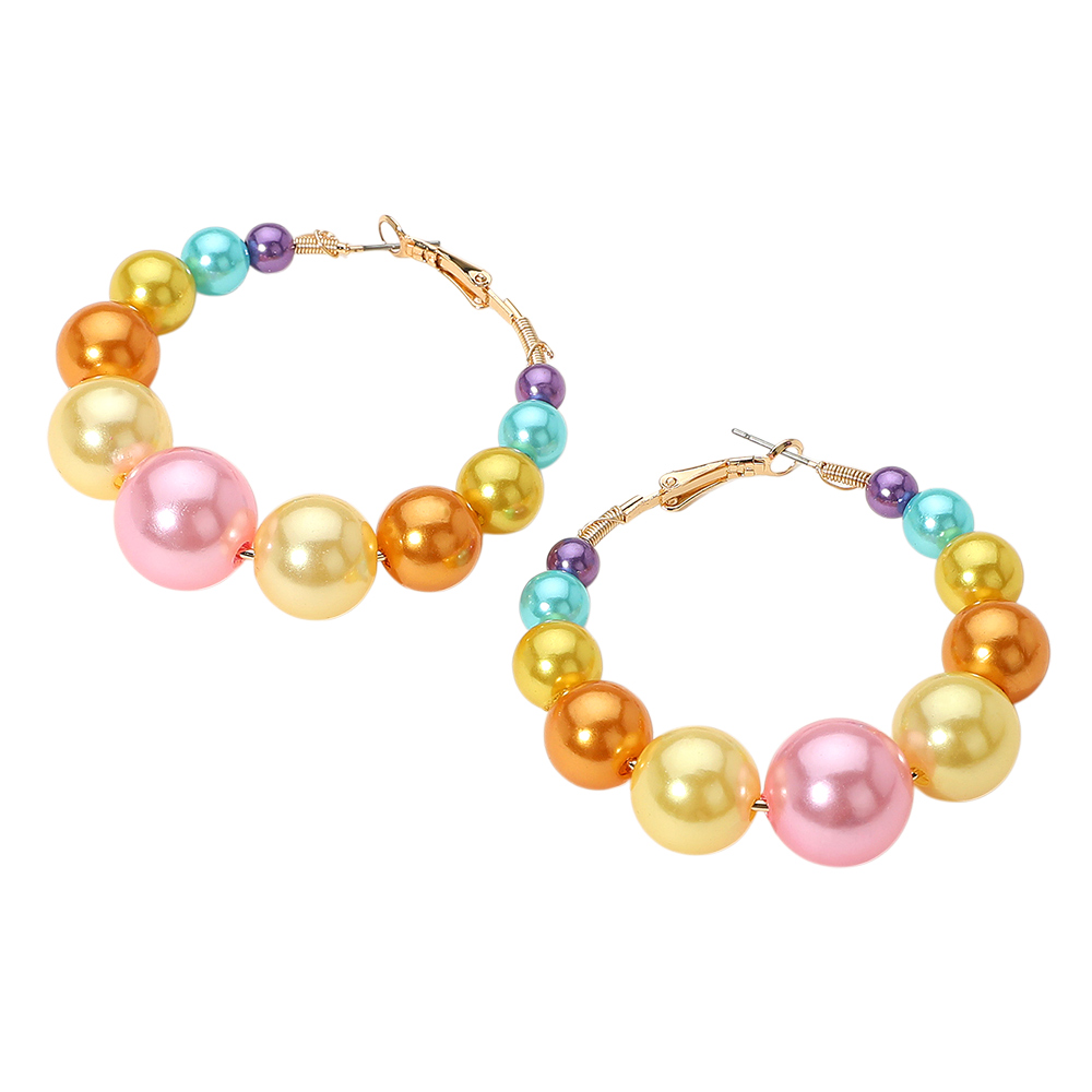 Details • Size : 2.25" X 2.25" • Omega Closure • Elevate your accessories with these bold beaded hoop earrings featuring a playful arrangement of glossy round beads. The vibrant and dynamic design adds a fun and lively touch to your outfit, making them perfect for festivals, casual wear, or standout fashion statements. • Lead and Nickel Compliant