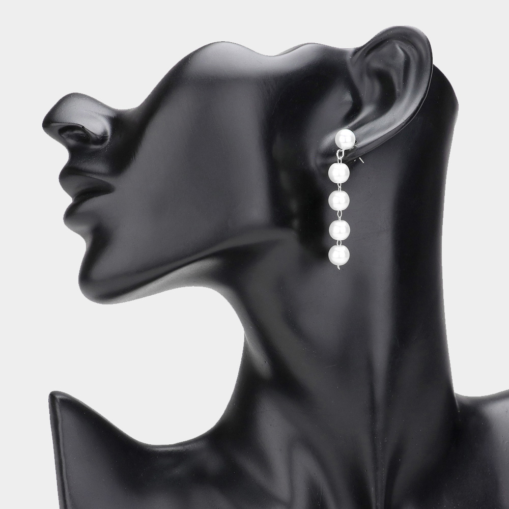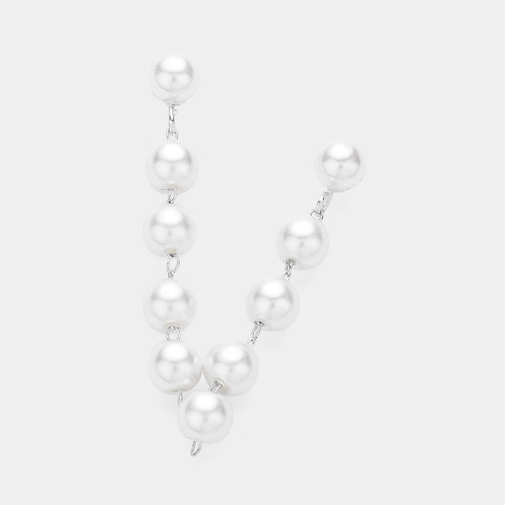 Bold Pearl Accented Metal Cage Geometric Long Necklace