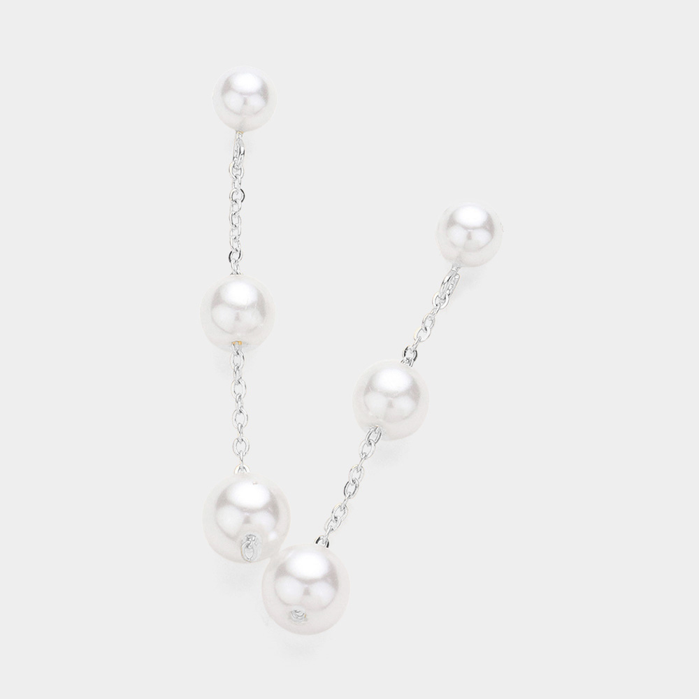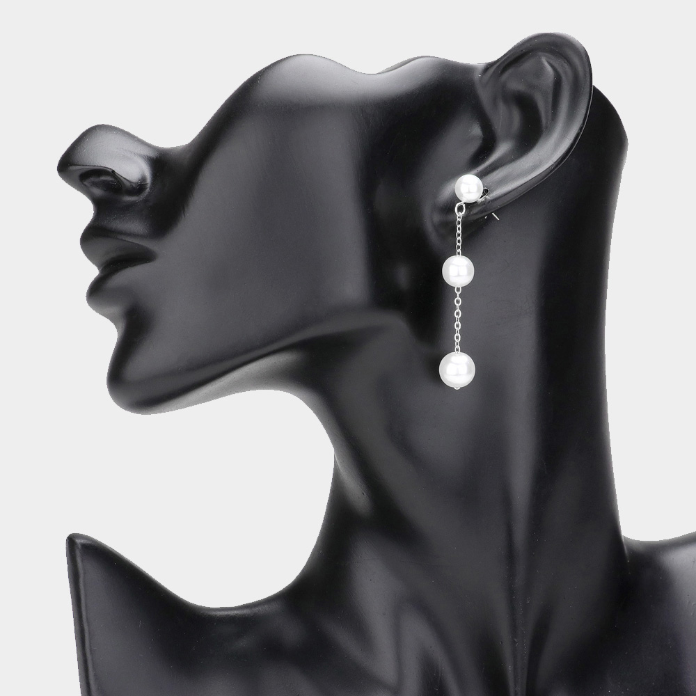 Freshwater Pearl Accented Metal Ball Open Teardrop Dangle Earrings