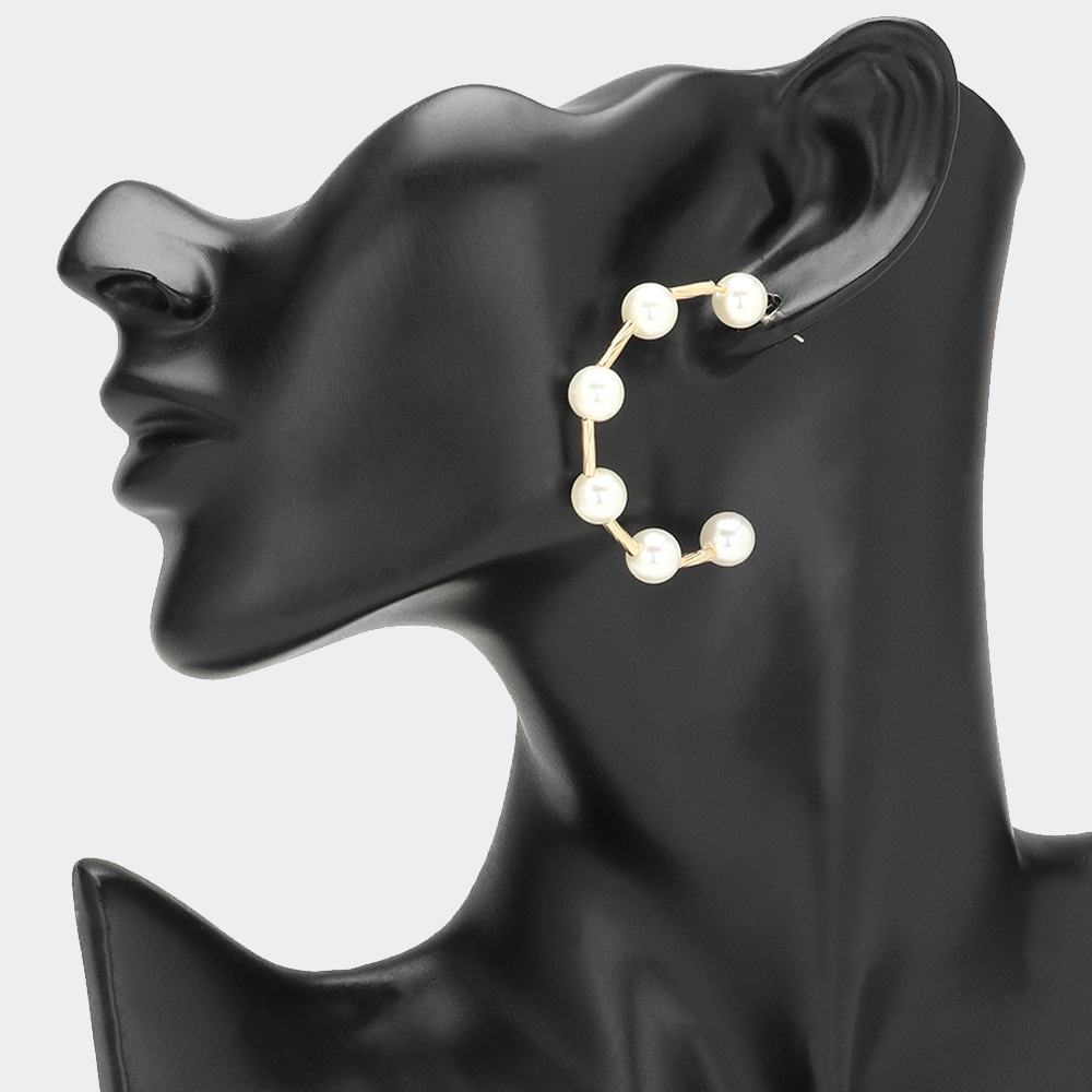 Pearl Accent Hammered Metal Hinged Bangle Bracelet