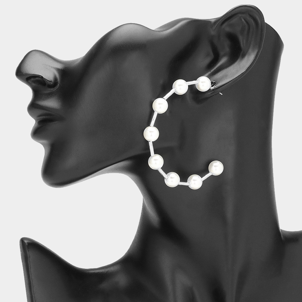 14K White Gold Dipped 2.25 Inch Metal Hypoallergenic Half Hoop Earrings