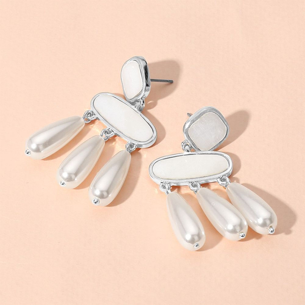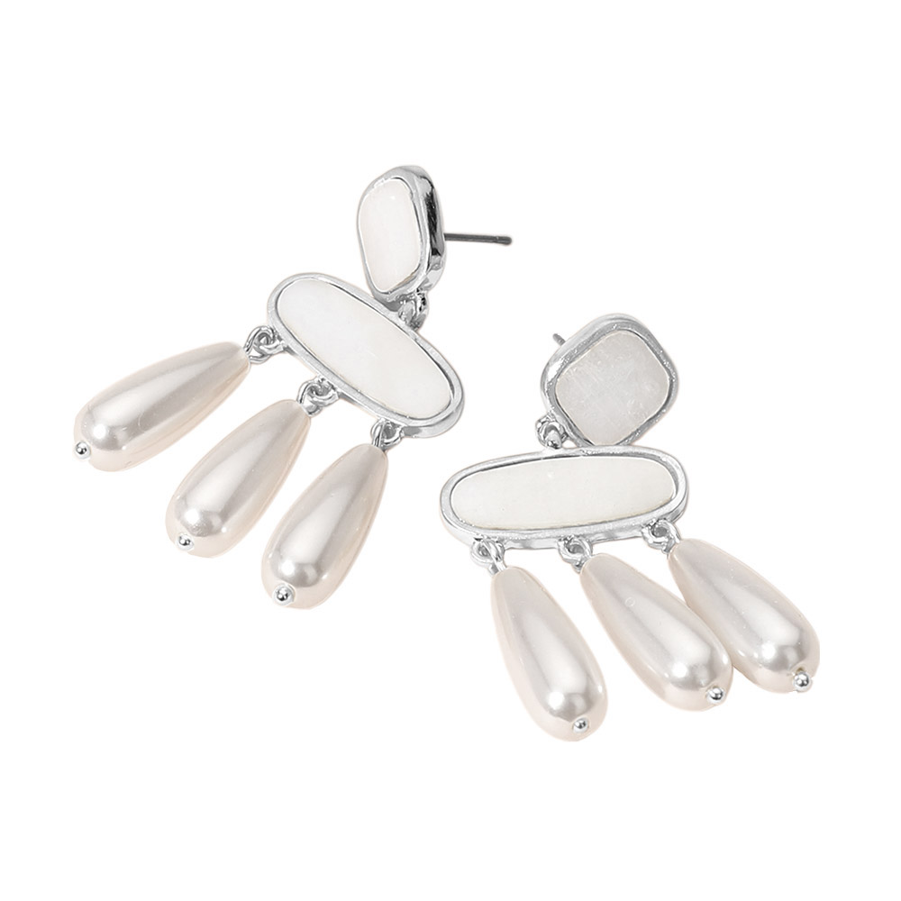 Triple Teardrop Pearl Dangle Geometric Earrings