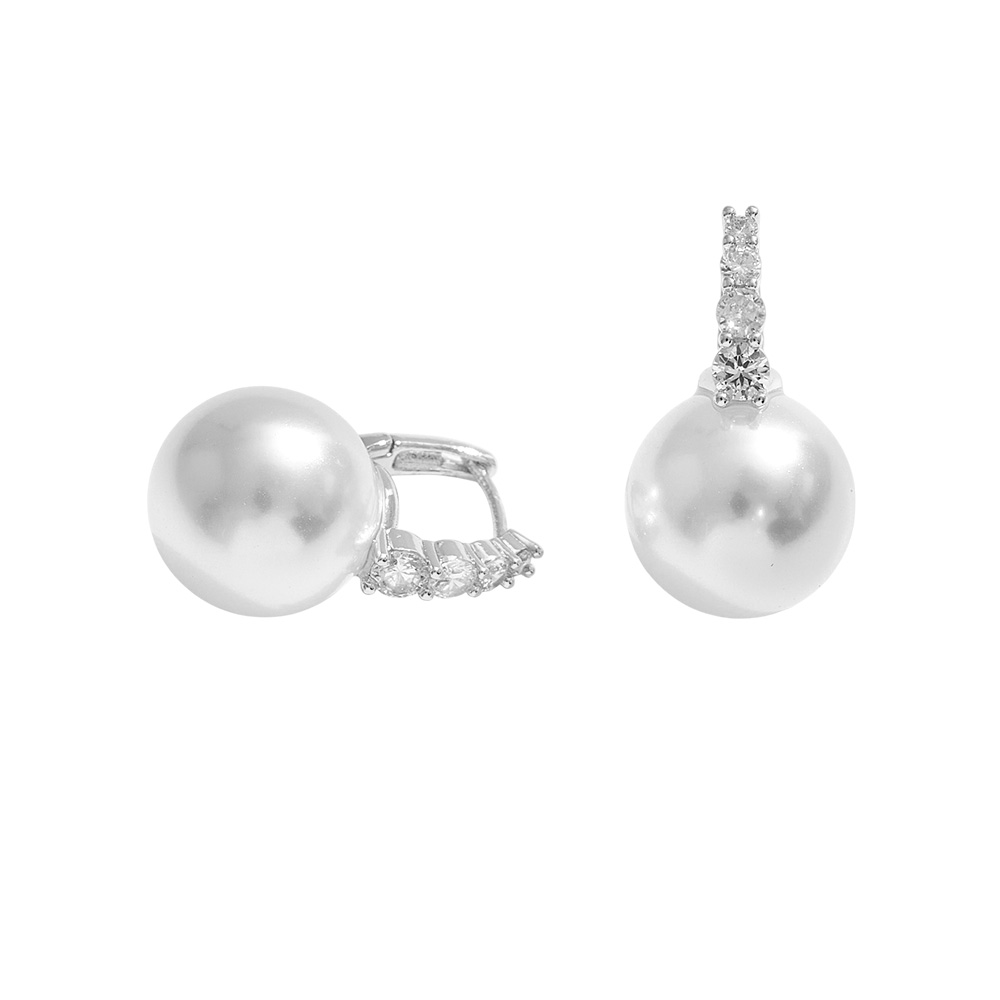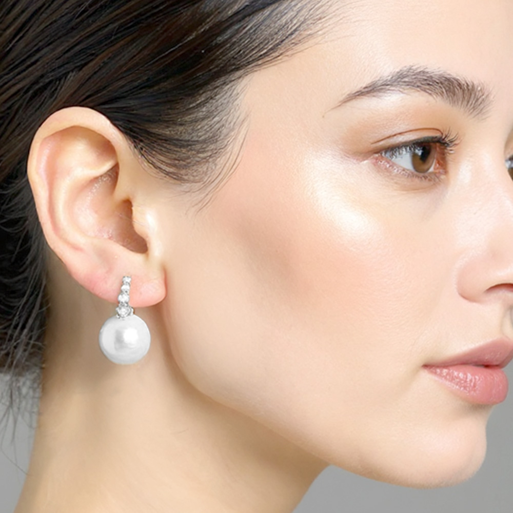 Details • Size : 0.7" X 1" • Hugie Back • These graceful drop earrings feature a lustrous pearl suspended from a line of sparkling stones, blending timeless charm with modern elegance. Perfect for weddings, evening events, or everyday sophistication, they add a refined touch to any jewelry collection. • Brass • CZ Cubic Zirconia • Gold Dipped • Hypoallergenic • Lead and Nickel Compliant • Made In Korea