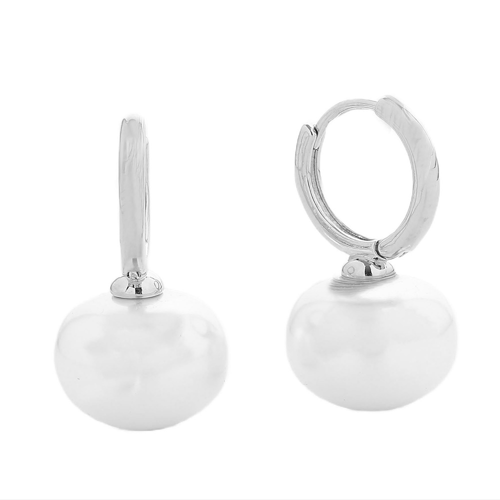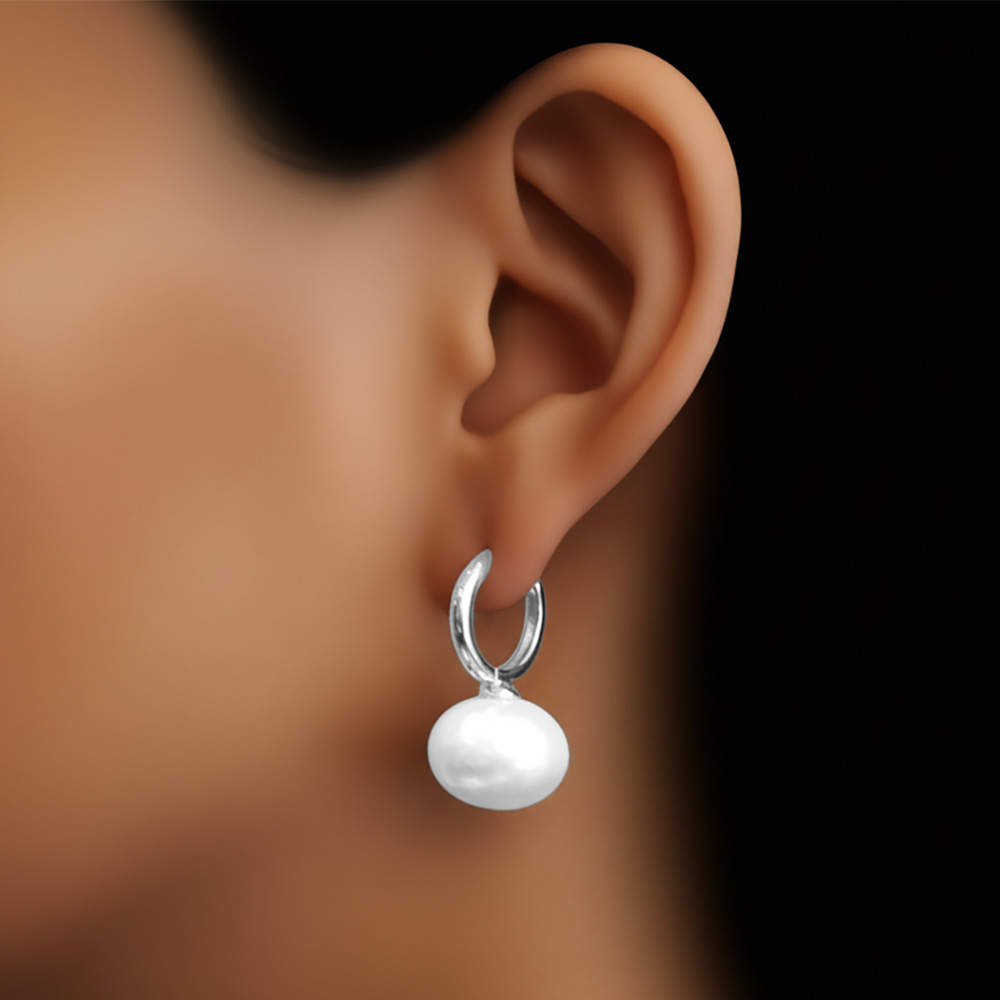 Details • Size : 0.7" X 1" • Huggie Back • Sophisticated hoop earrings featuring a smooth pearl drop charm for timeless elegance. Designed to complement any outfit, these earrings are perfect for weddings, evening events, or adding a touch of refinement to your everyday style. • Brass • Gold Dipped • Hypoallergenic • Lead and Nickel Compliant • Made In Korea