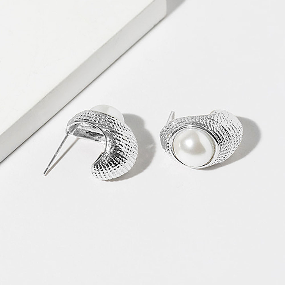 • Textured crescent stud earrings featuring a sculpted curved shape with a smooth round pearl accent for a refined, modern look. Designed to elevate everyday styling, these studs pair effortlessly with casual outfits, office wear, or layered ear looks, offering timeless appeal with subtle statement detail.