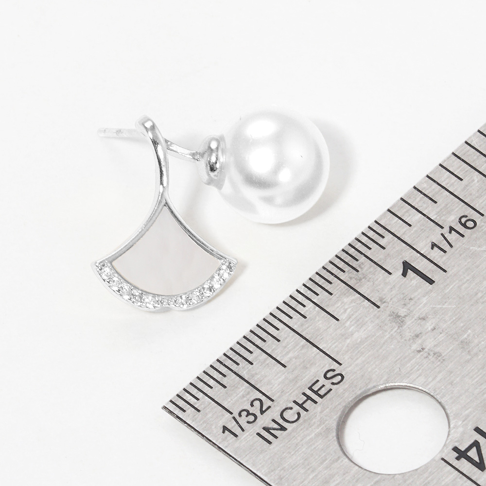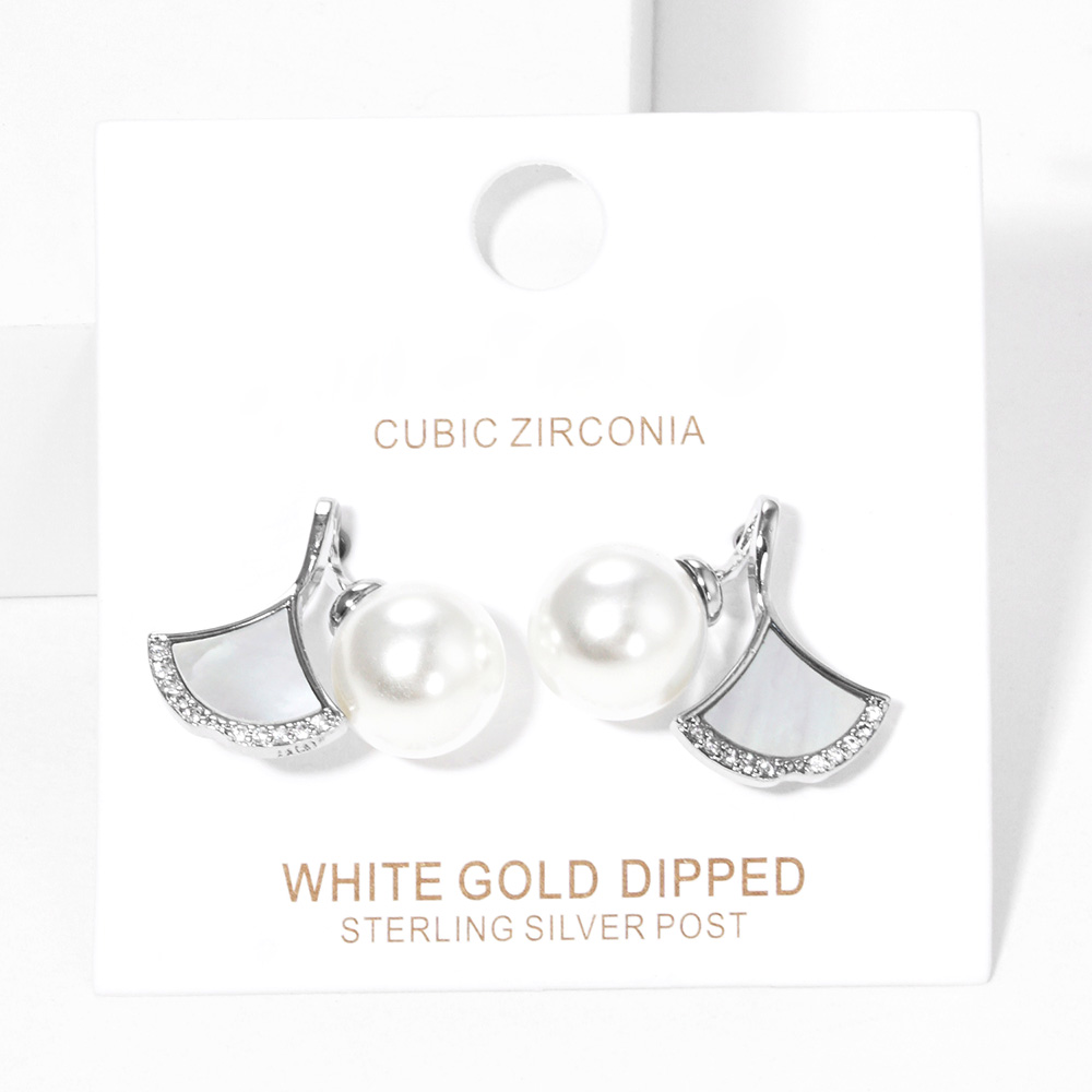 White Gold Dipped Pearl Mother of Pearl Ginkgo Earrings