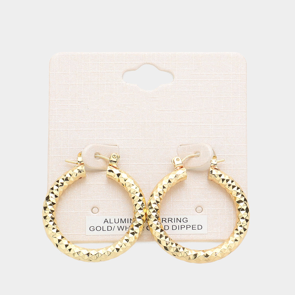 1.25" Gold Dipped Textured Aluminum Pin Catch Hoop Earrings
