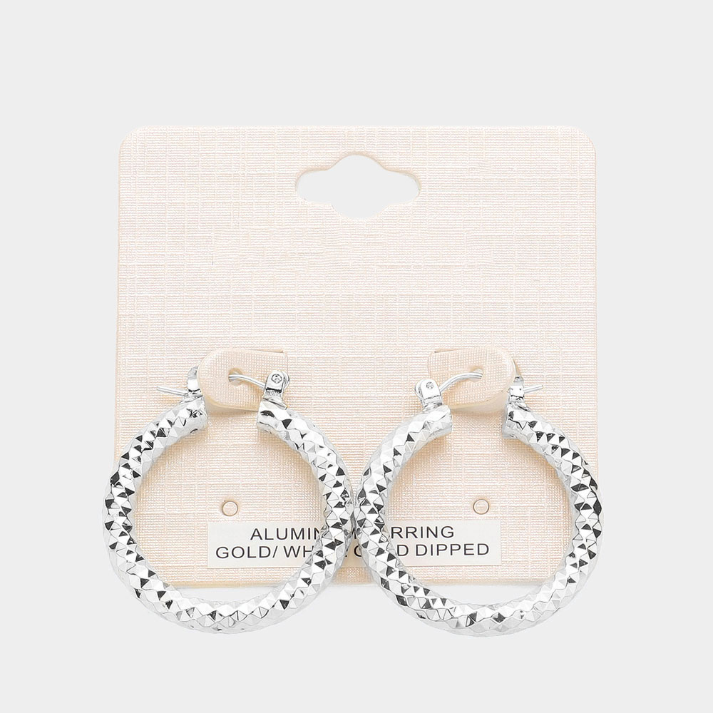 1.25" White Gold Dipped Textured Aluminum Pin Catch Hoop Earrings